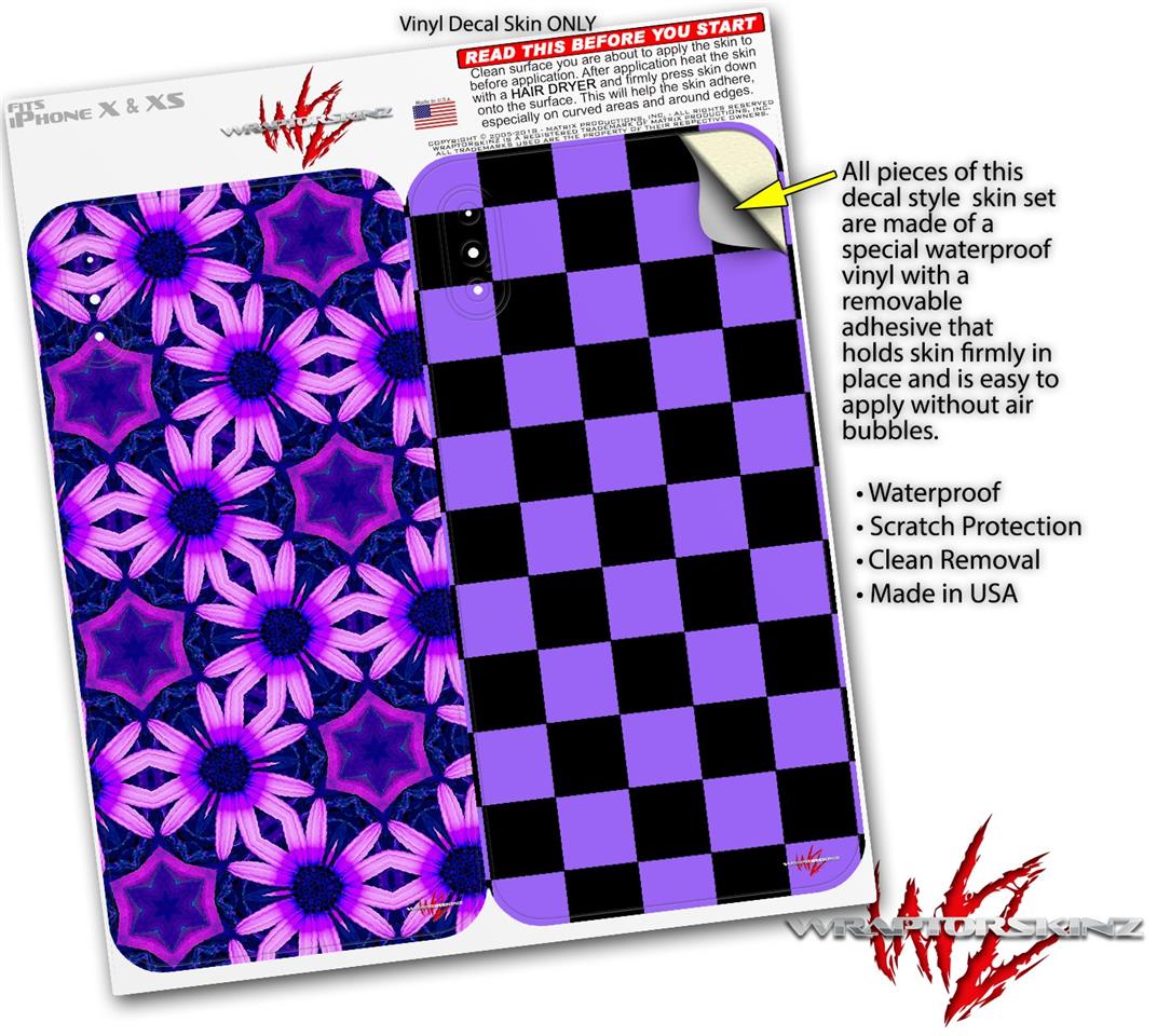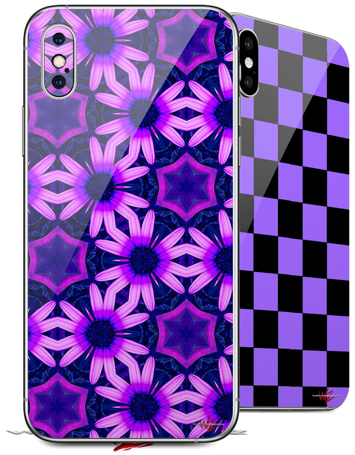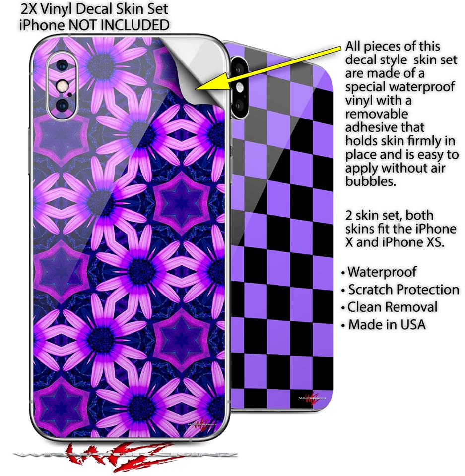 2 Decal style Skin Wraps set for Apple iPhone X and XS Daisies Purple