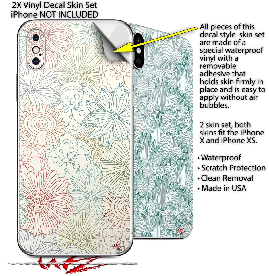2 Decal style Skin Wraps set for Apple iPhone X and XS Flowers Pattern 02