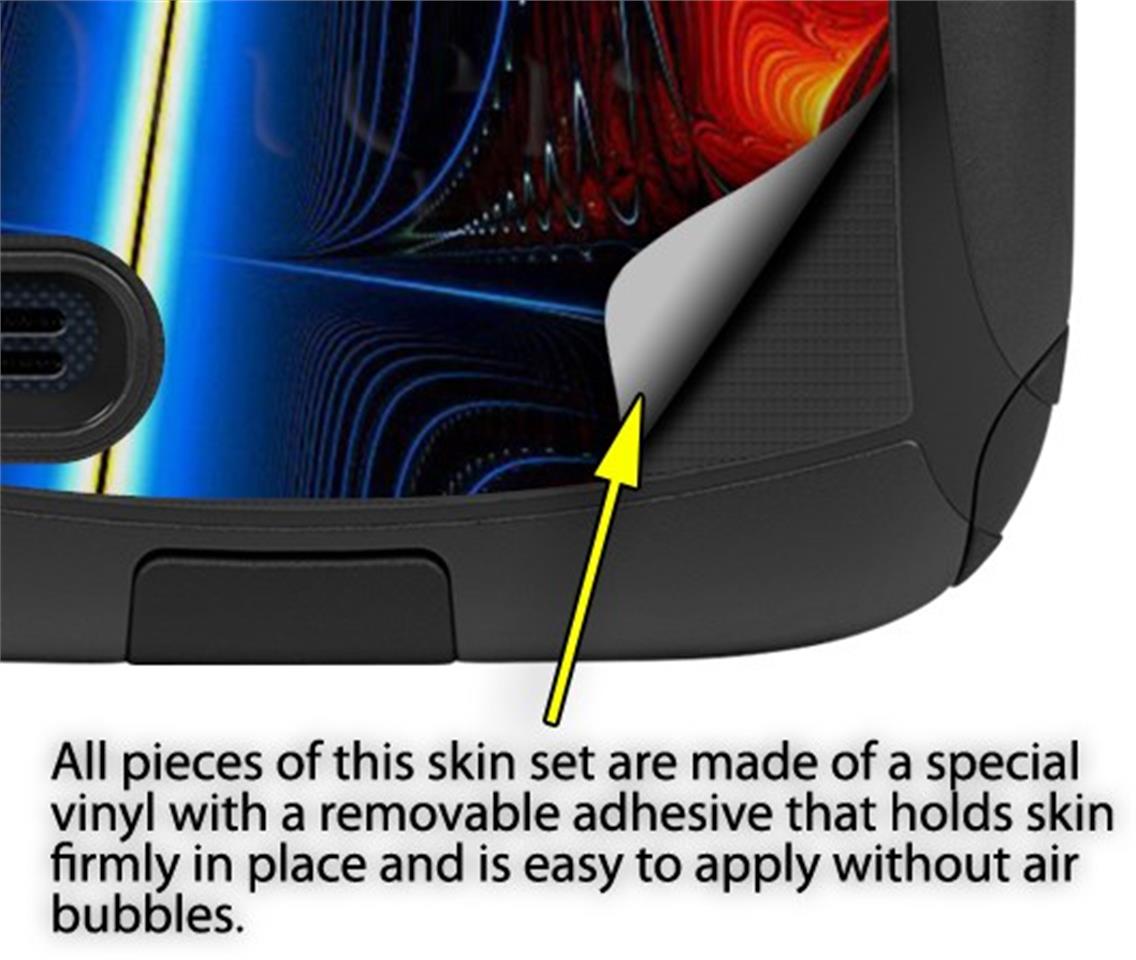 WraptorSkinz® are self adhering vinyl decal style skins and are a great way to add a new look to your protective case. WraptorSkinz® are a composite of two layers of commercial grade materials. The bottom layer is a soft, flexible vinyl with a special removable adhesive that is easily positioned, applied without air bubbles. Next we print the bottom layer with UV protected, fade resistant inks that deliver superb photo quality designs in vibrant colors. Finally we bond a professional grade laminate over the entire skin adding a glossy protective finish.
