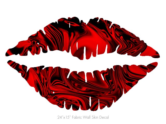 Liquid Metal Chrome Red - Kissing Lips Fabric Wall Skin Decal measures 24x15 inches