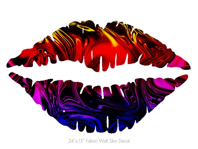 Liquid Metal Chrome Flame Hot - Kissing Lips Fabric Wall Skin Decal measures 24x15 inches