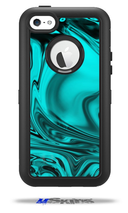 Liquid Metal Chrome Neon Teal - Decal Style Vinyl Skin compatible with Otterbox Defender iPhone 5C Case (CASE SOLD SEPARATELY)