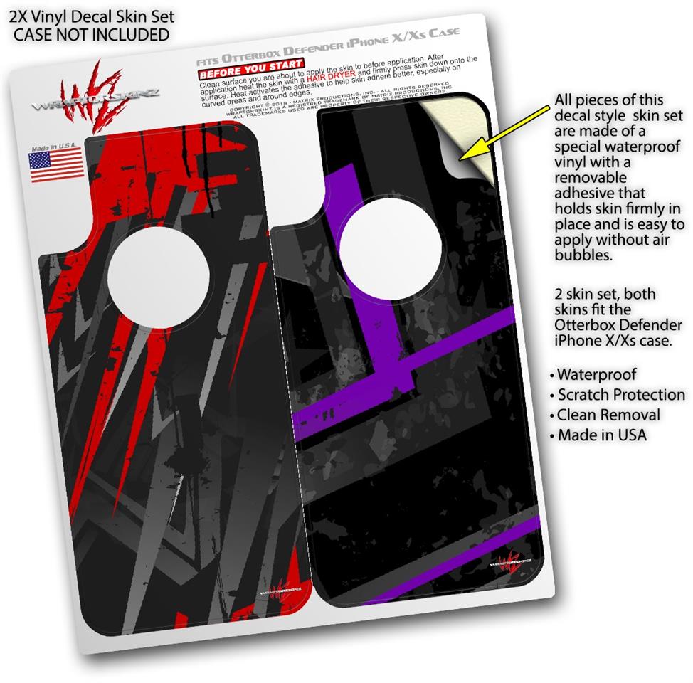2x Decal style Skin Wrap Set compatible with Otterbox Defender iPhone X and Xs Case - Baja 0014 Red (CASE NOT INCLUDED)