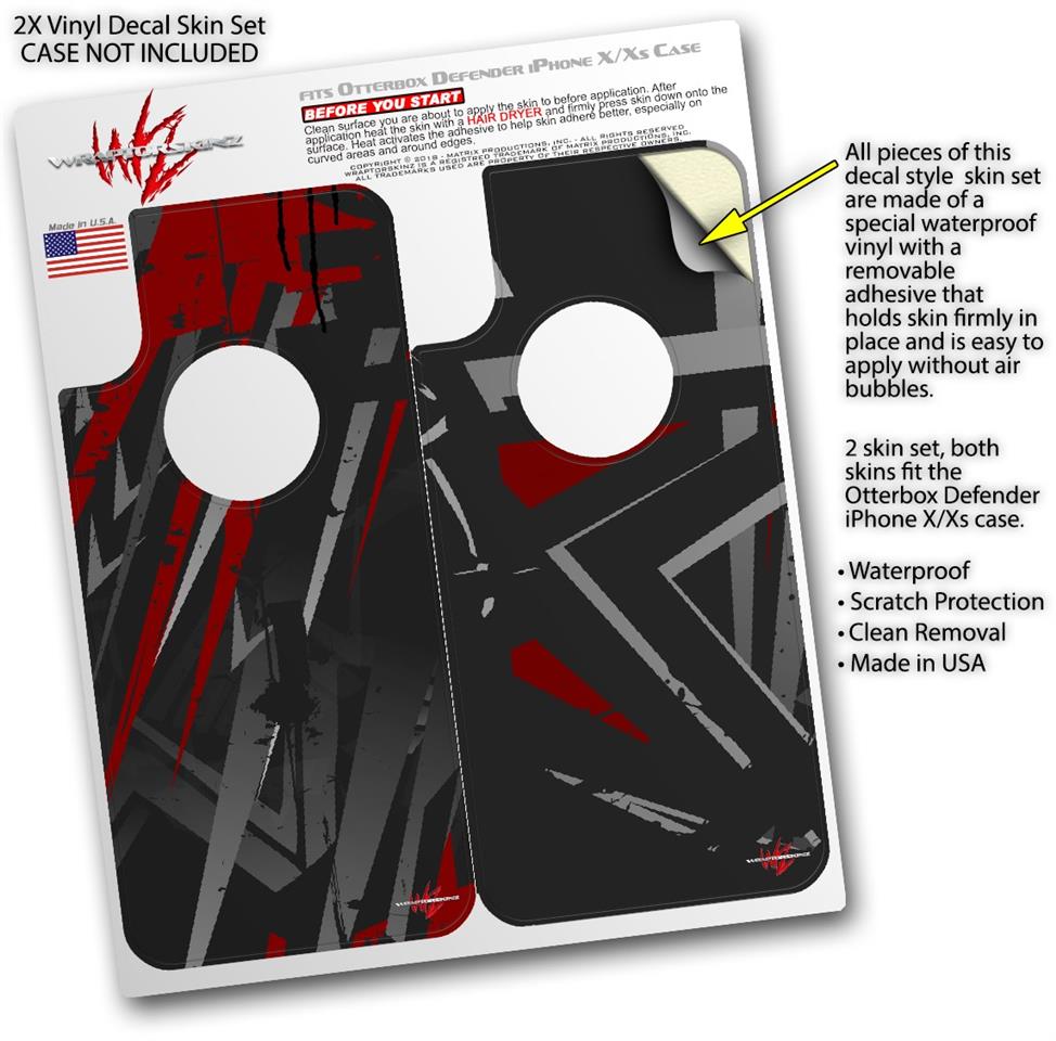 2x Decal style Skin Wrap Set compatible with Otterbox Defender iPhone X and Xs Case - Baja 0014 Red Dark (CASE NOT INCLUDED)