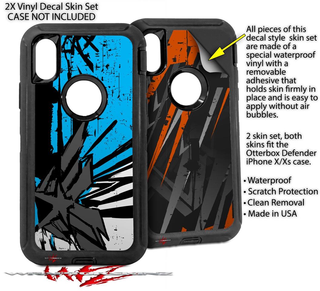 2x Decal style Skin Wrap Set compatible with Otterbox Defender iPhone X and Xs Case - Baja 0040 Blue Medium (CASE NOT INCLUDED)