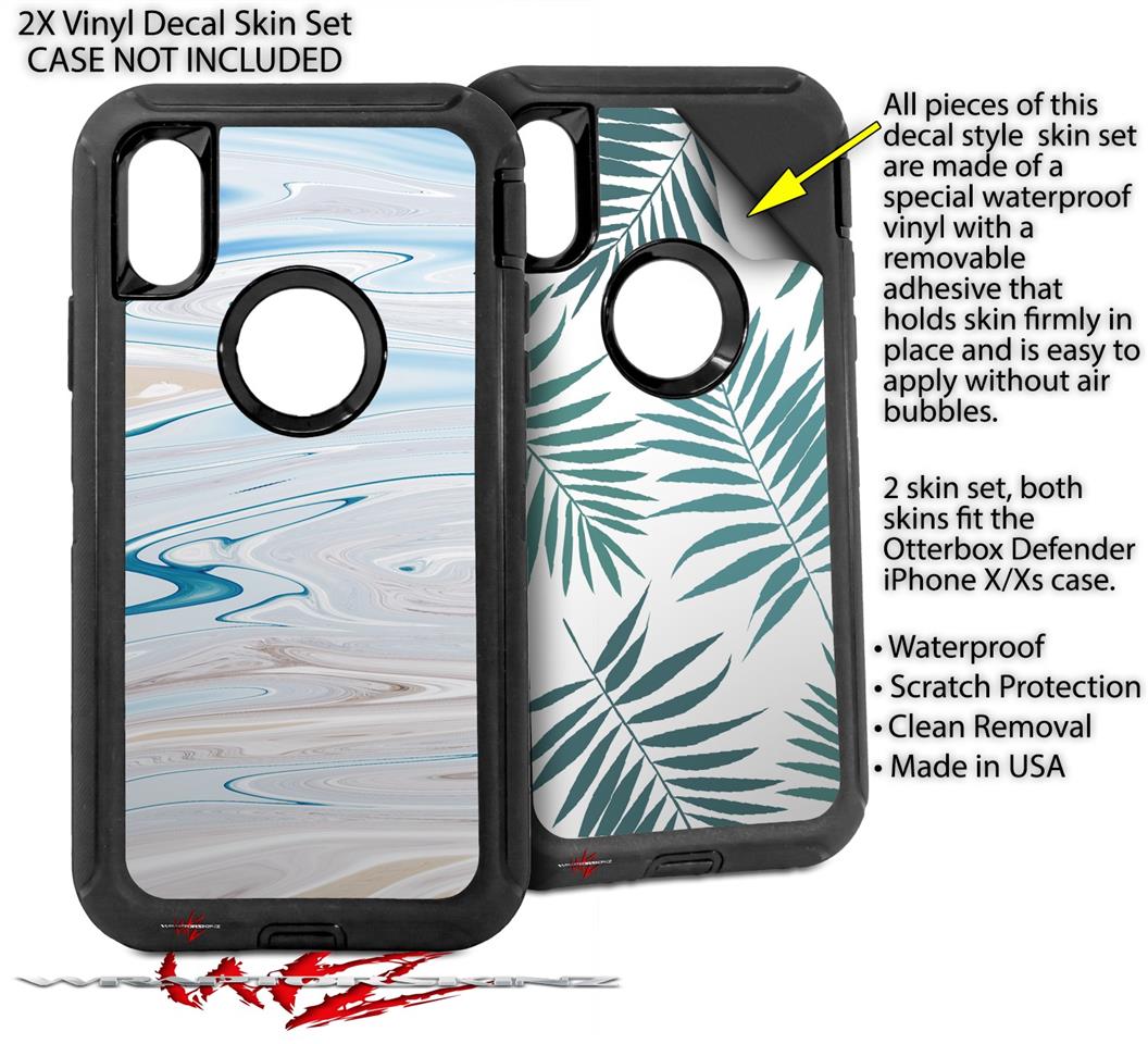 2x Decal style Skin Wrap Set compatible with Otterbox Defender iPhone X and Xs Case - Marble Beach (CASE NOT INCLUDED)