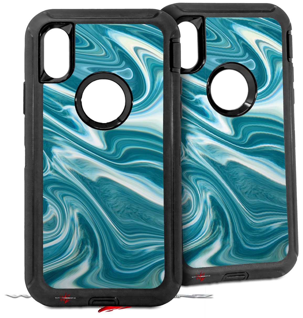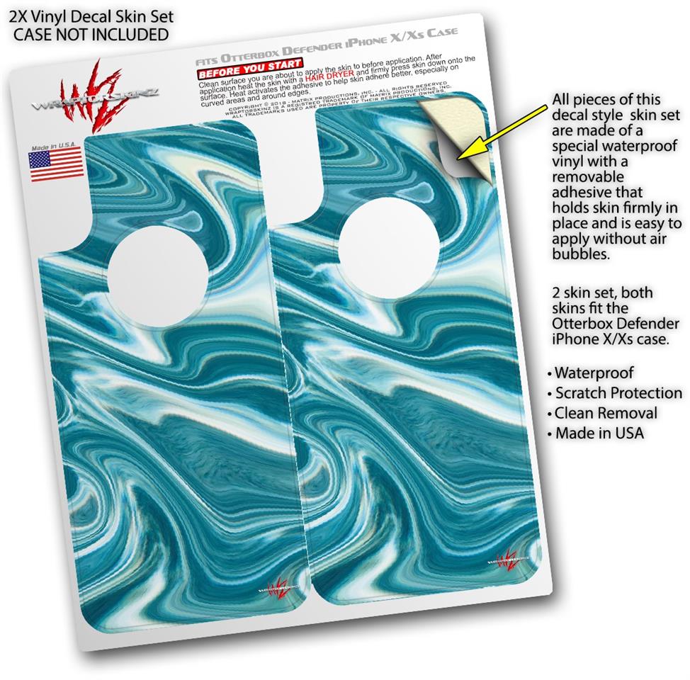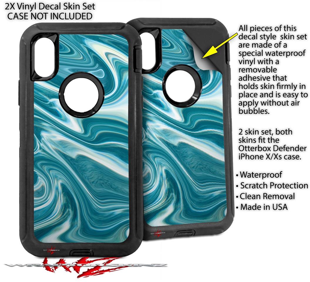 2x Decal style Skin Wrap Set compatible with Otterbox Defender iPhone X and Xs Case - Blue Marble (CASE NOT INCLUDED)