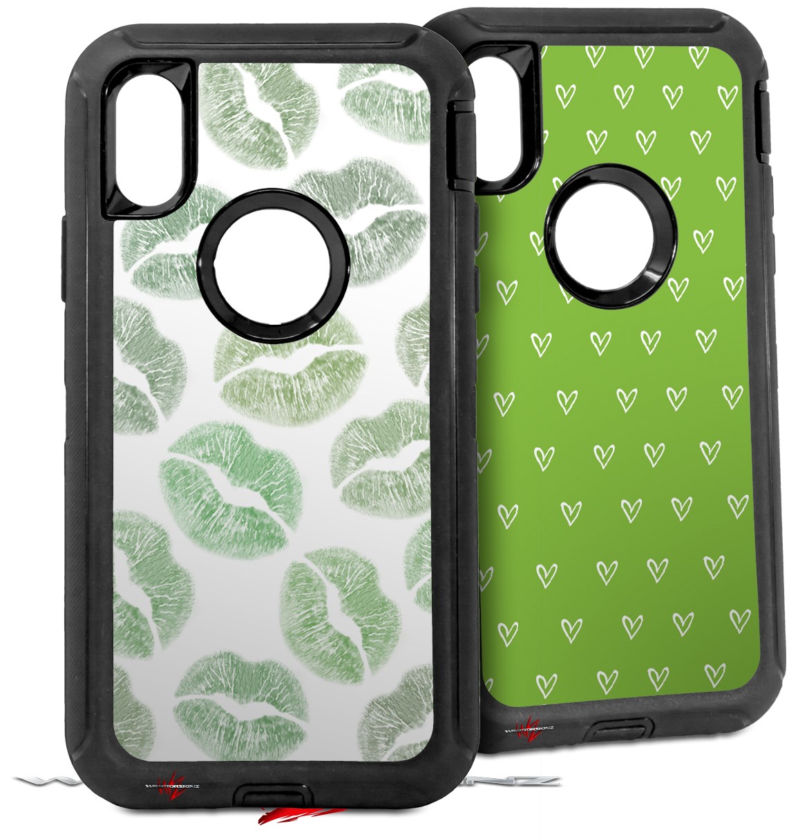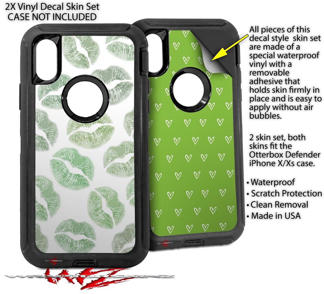 2x Decal style Skin Wrap Set compatible with Otterbox Defender iPhone X and Xs Case - Green Lips (CASE NOT INCLUDED)