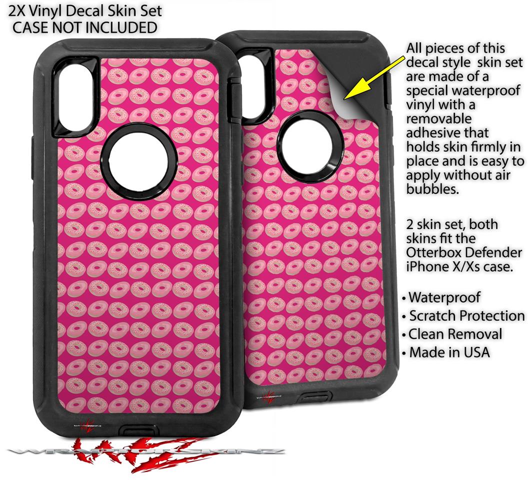 2x Decal style Skin Wrap Set compatible with Otterbox Defender iPhone X and Xs Case - Donuts Hot Pink Fuchsia (CASE NOT INCLUDED)