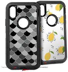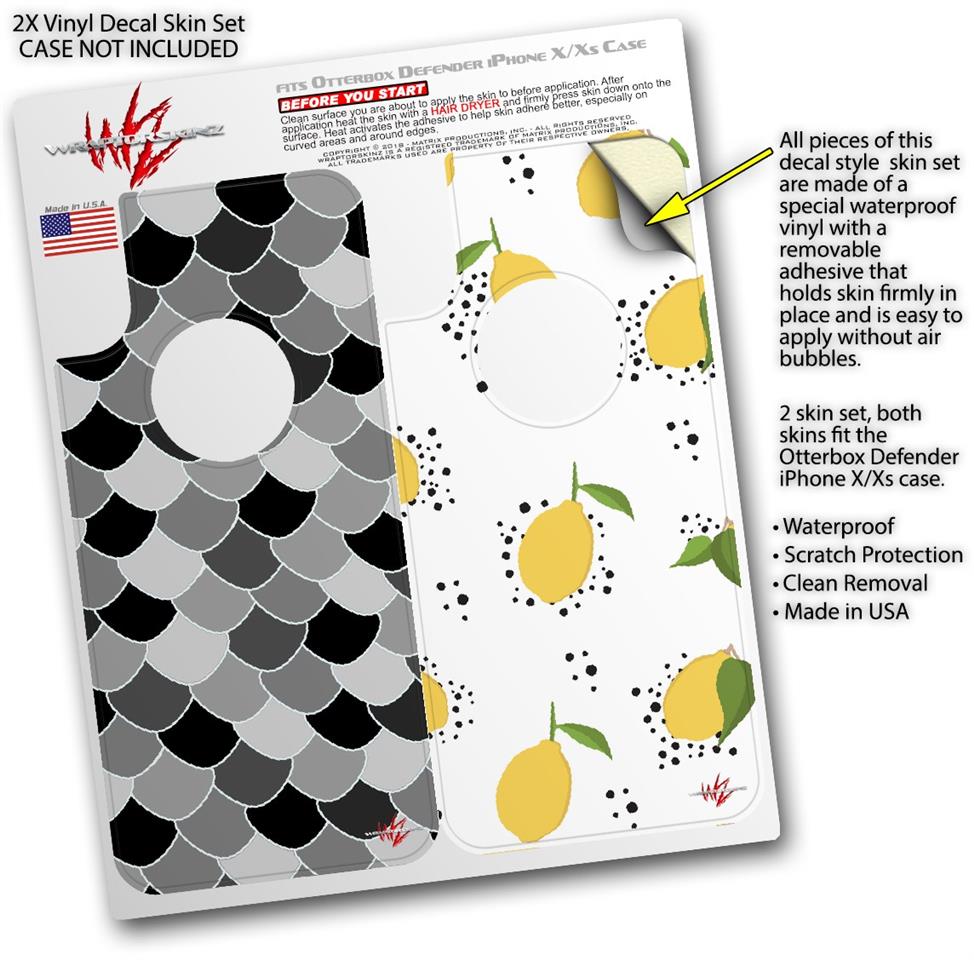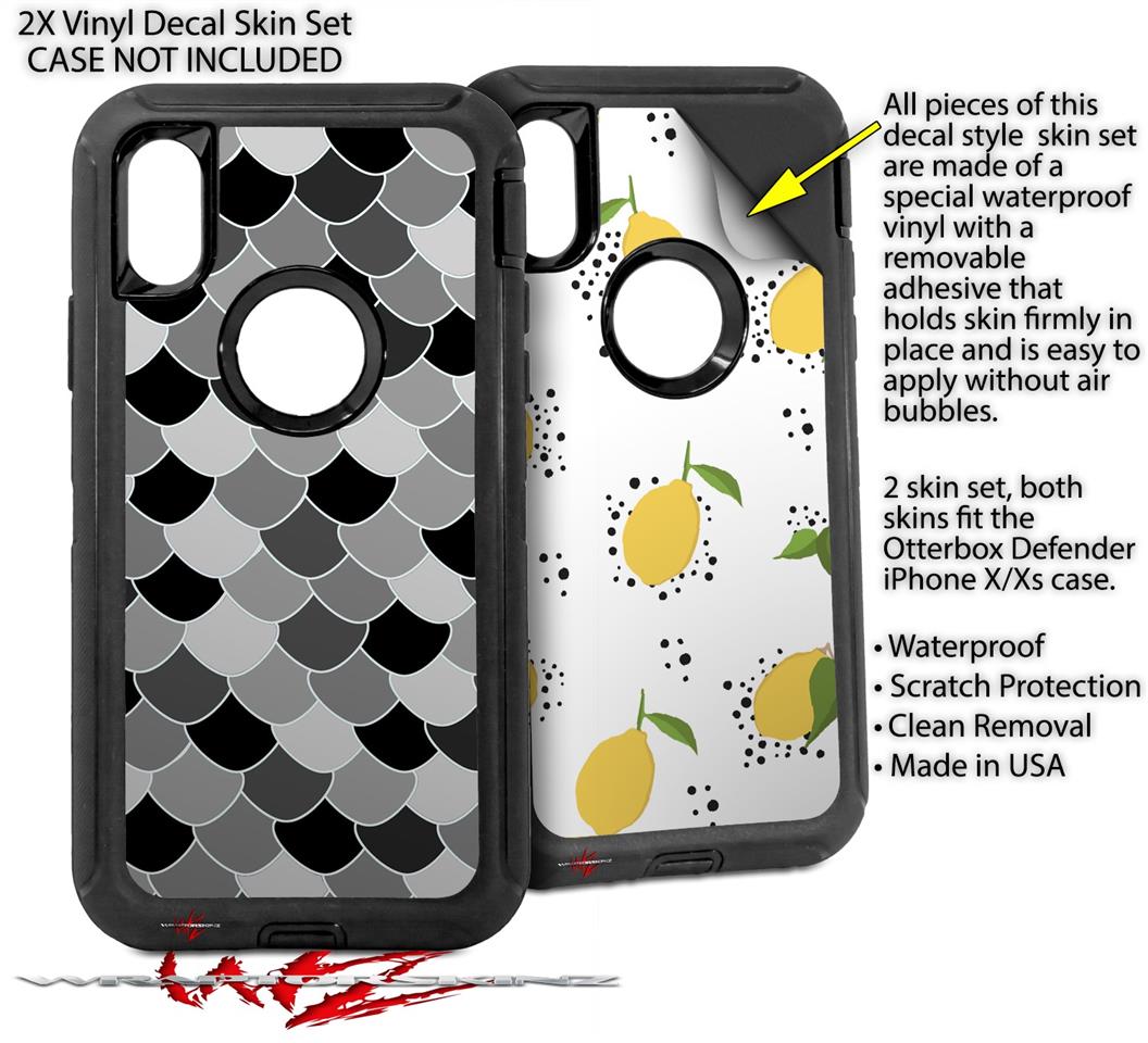2x Decal style Skin Wrap Set compatible with Otterbox Defender iPhone X and Xs Case - Scales Black (CASE NOT INCLUDED)