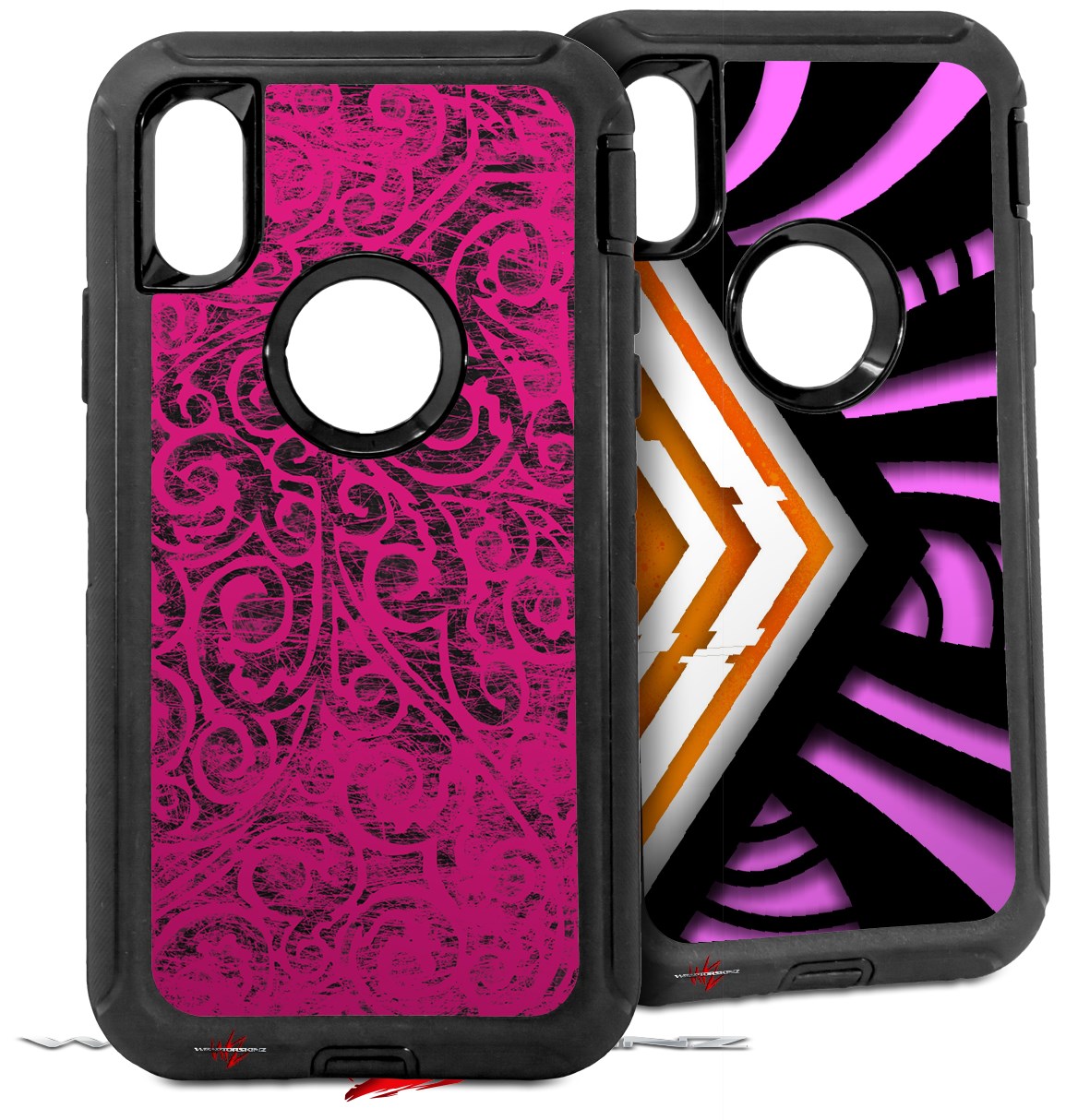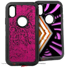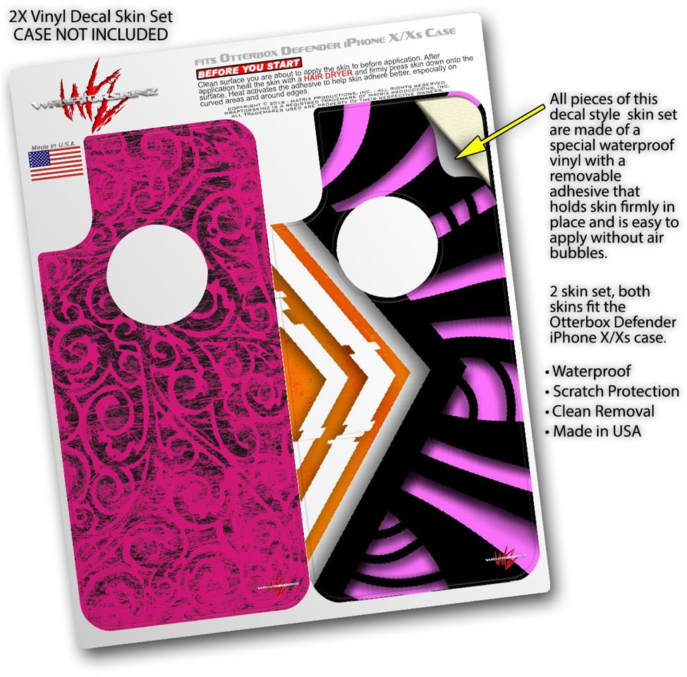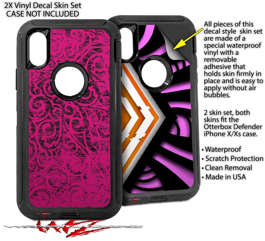 2x Decal style Skin Wrap Set compatible with Otterbox Defender iPhone X and Xs Case - Folder Doodles Fuchsia (CASE NOT INCLUDED)