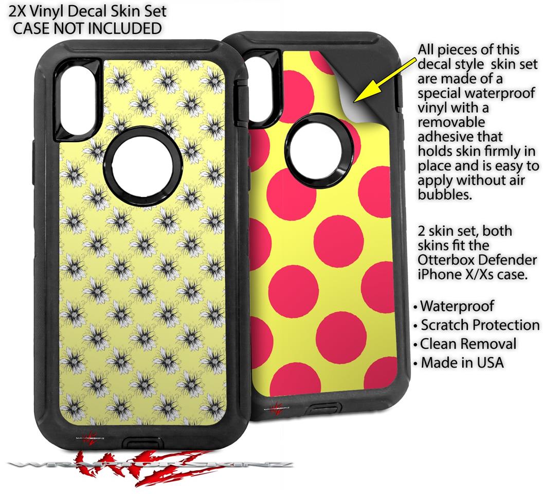 2x Decal style Skin Wrap Set compatible with Otterbox Defender iPhone X and Xs Case - Kearas Daisies Yellow (CASE NOT INCLUDED)