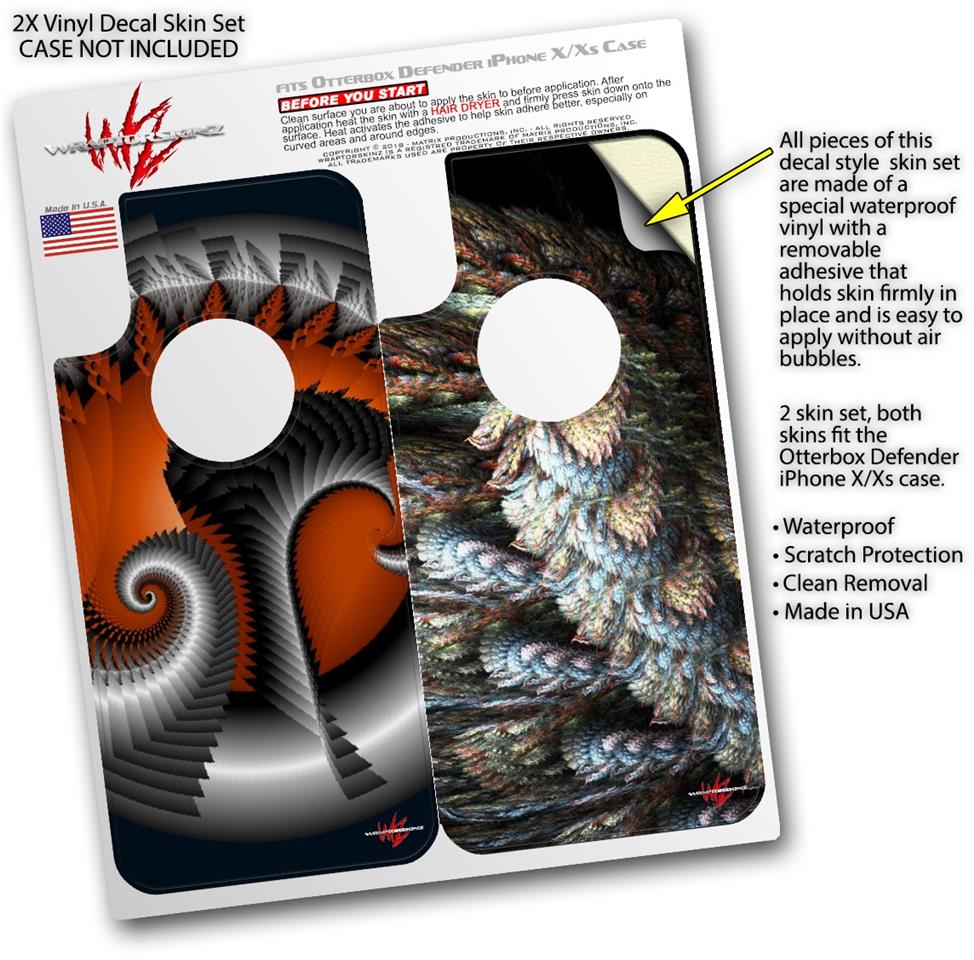 • CASE NOT INCLUDED - 2 Skins cover back surface of 2 Otterbox Defender iPhone X / Xs cases as pictured.