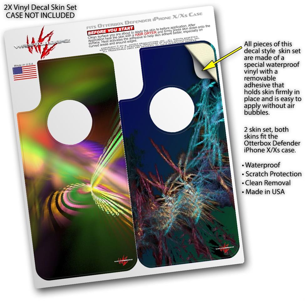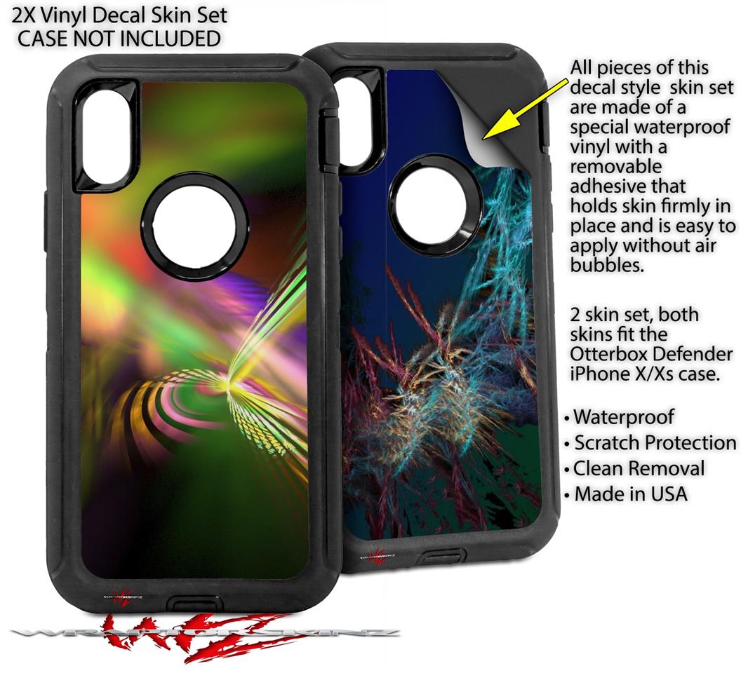 2x Decal style Skin Wrap Set compatible with Otterbox Defender iPhone X and Xs Case - Prismatic (CASE NOT INCLUDED)