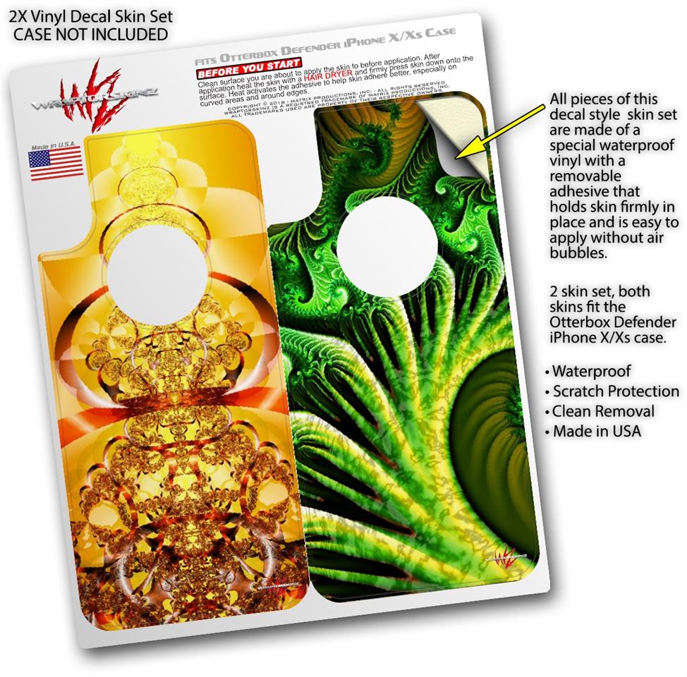 WraptorSkinz® skin wraps compatible with Otterbox Defender iPhone X / Xs Cases are printed using superb photo quality designs and vibrant colors printed with special fade resistant inks that last even in direct sun for years. WraptorSkinz are a composite of two layers of commercial grade materials. The bottom layer is a soft, flexible vinyl with a special removable adhesive that is easily positioned, applied without air bubbles. Next, we print the bottom layer with UV protected, fade resistant inks that deliver superb photo quality designs in vibrant colors. Finally, we bond a professional grade laminate over the entire skin adding a glossy protective finish. This product is not affiliated with or endorsed by Otterbox.