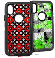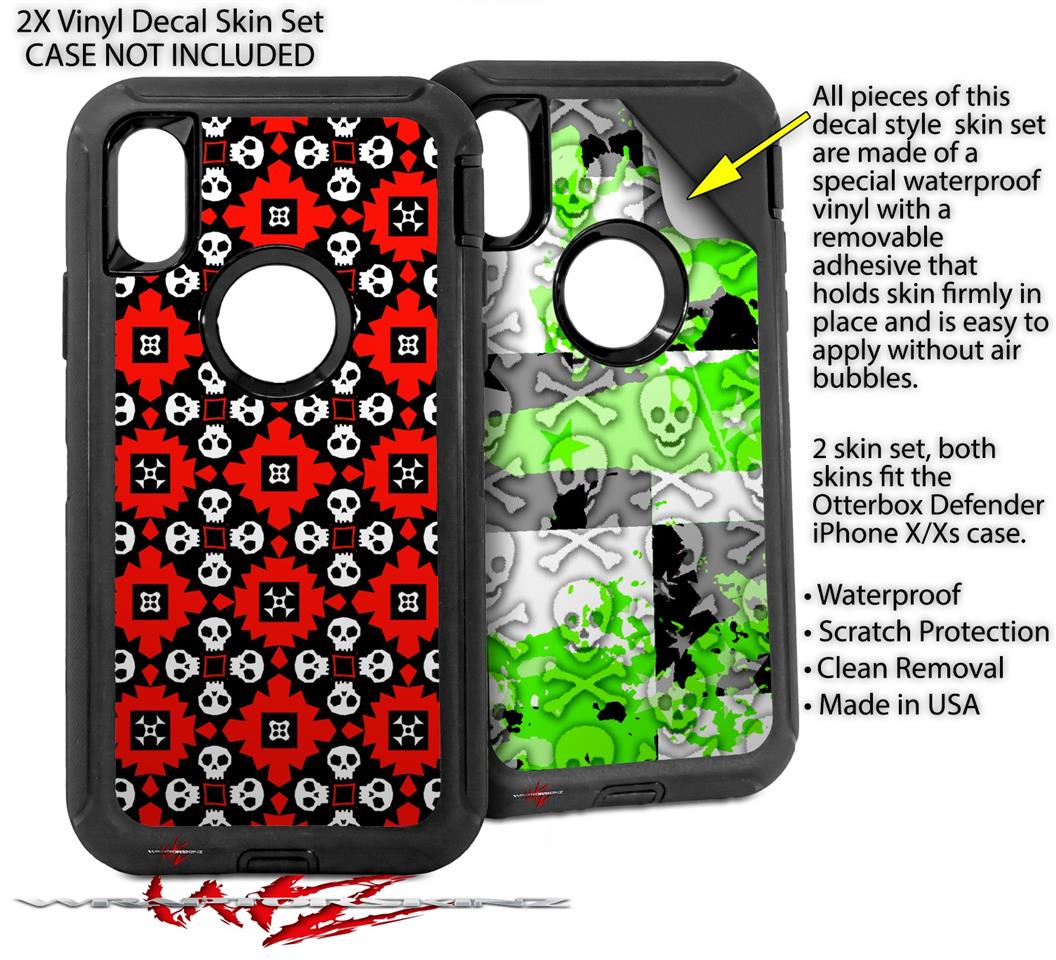 2x Decal style Skin Wrap Set compatible with Otterbox Defender iPhone X and Xs Case - Goth Punk Skulls (CASE NOT INCLUDED)