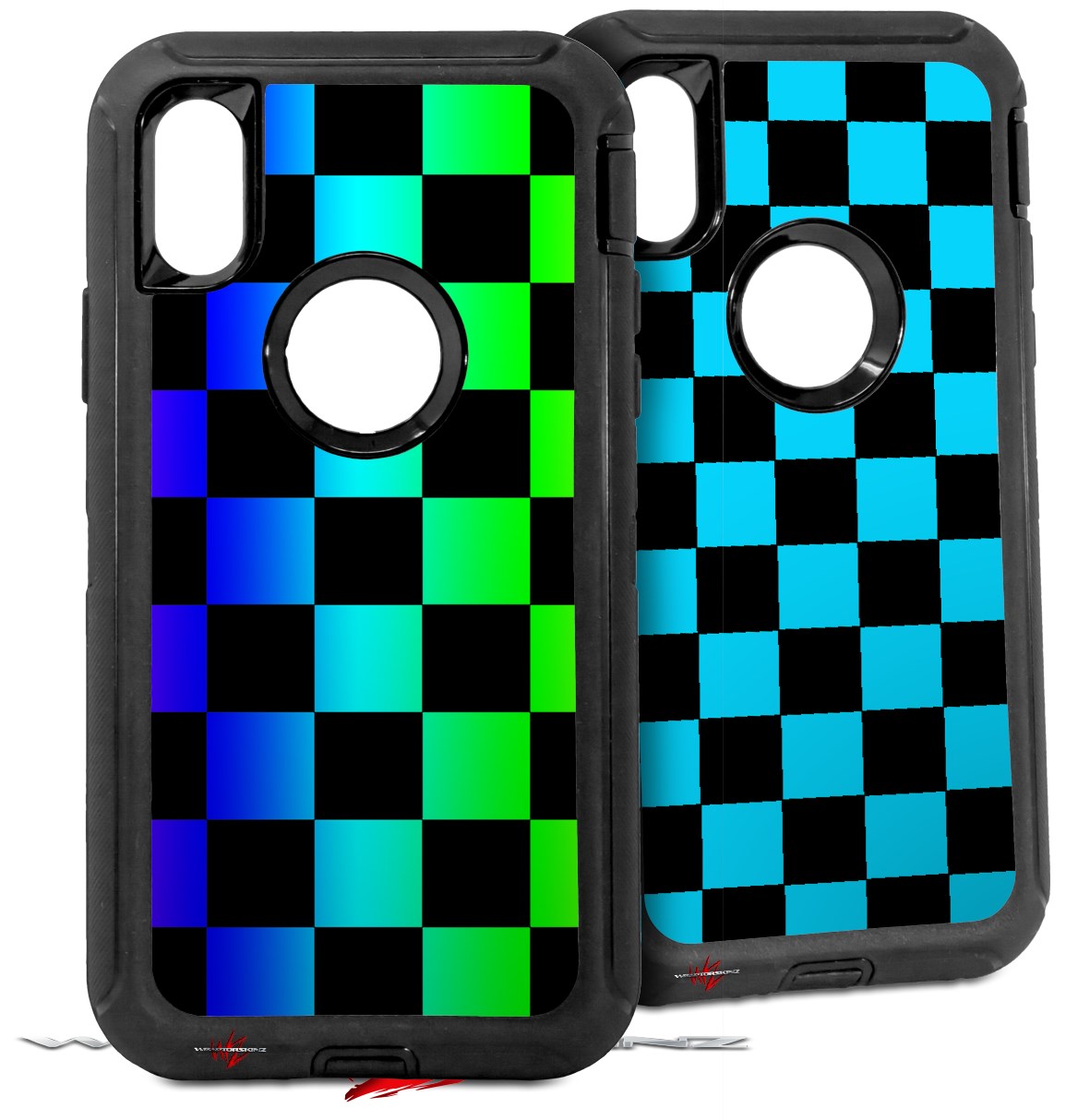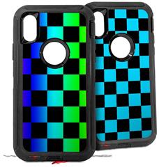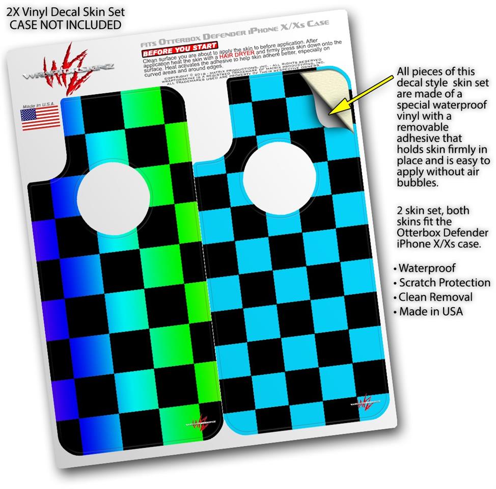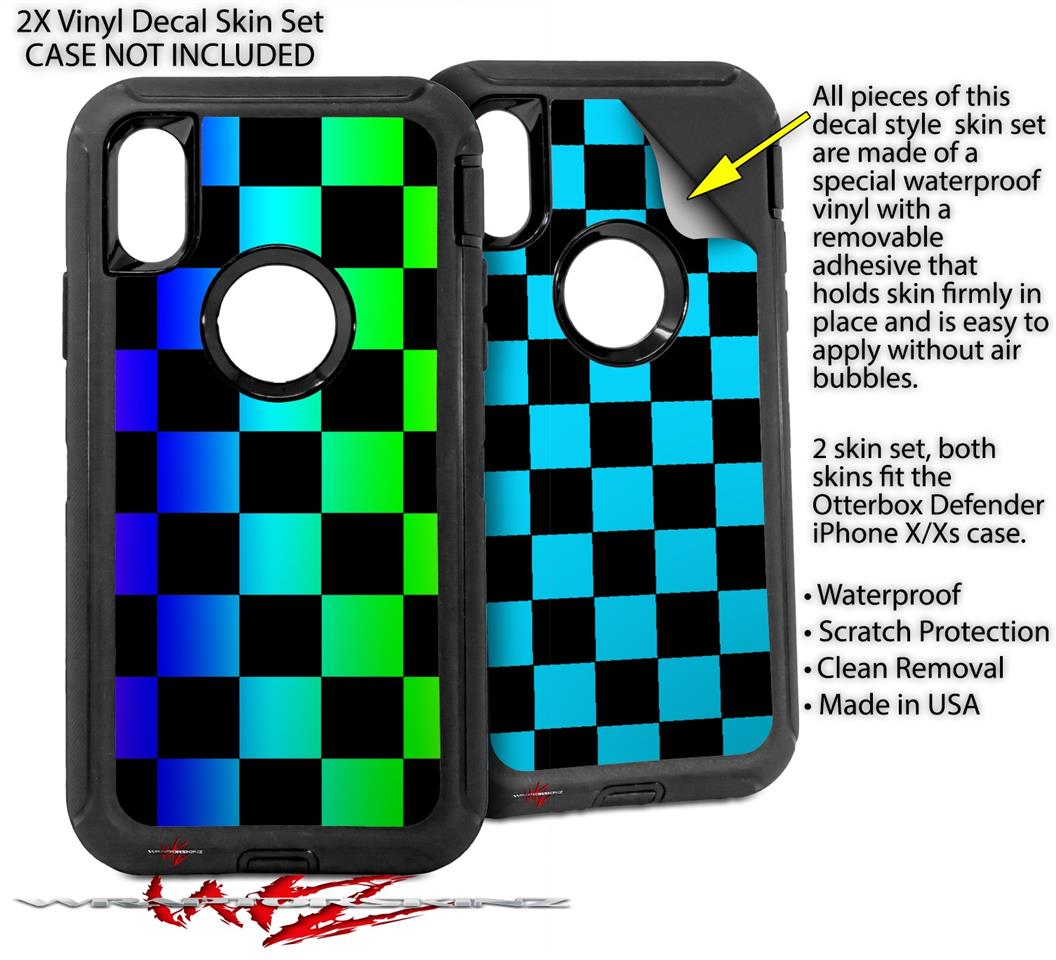 2x Decal style Skin Wrap Set compatible with Otterbox Defender iPhone X and Xs Case - Rainbow Checkerboard (CASE NOT INCLUDED)