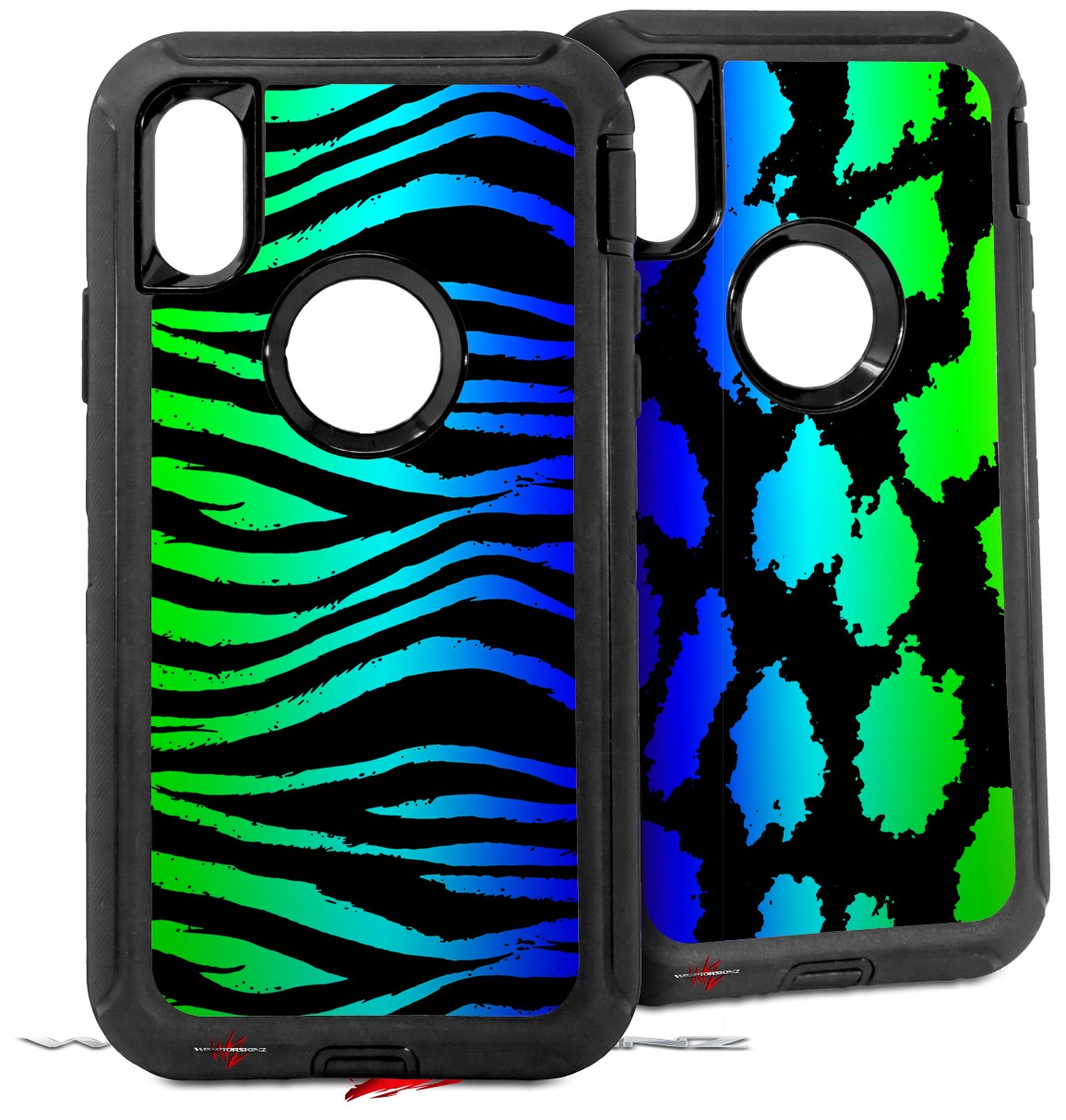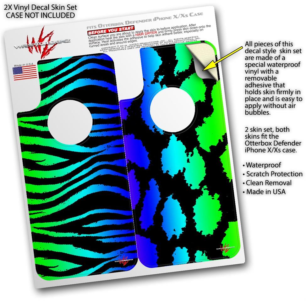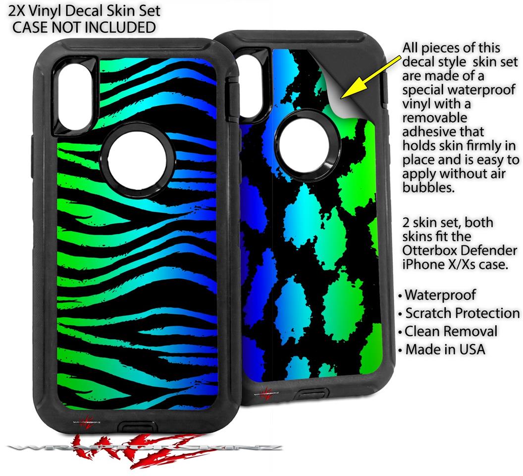 2x Decal style Skin Wrap Set compatible with Otterbox Defender iPhone X and Xs Case - Rainbow Zebra (CASE NOT INCLUDED)