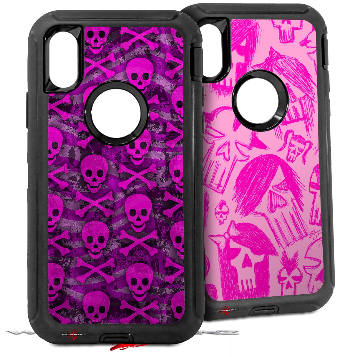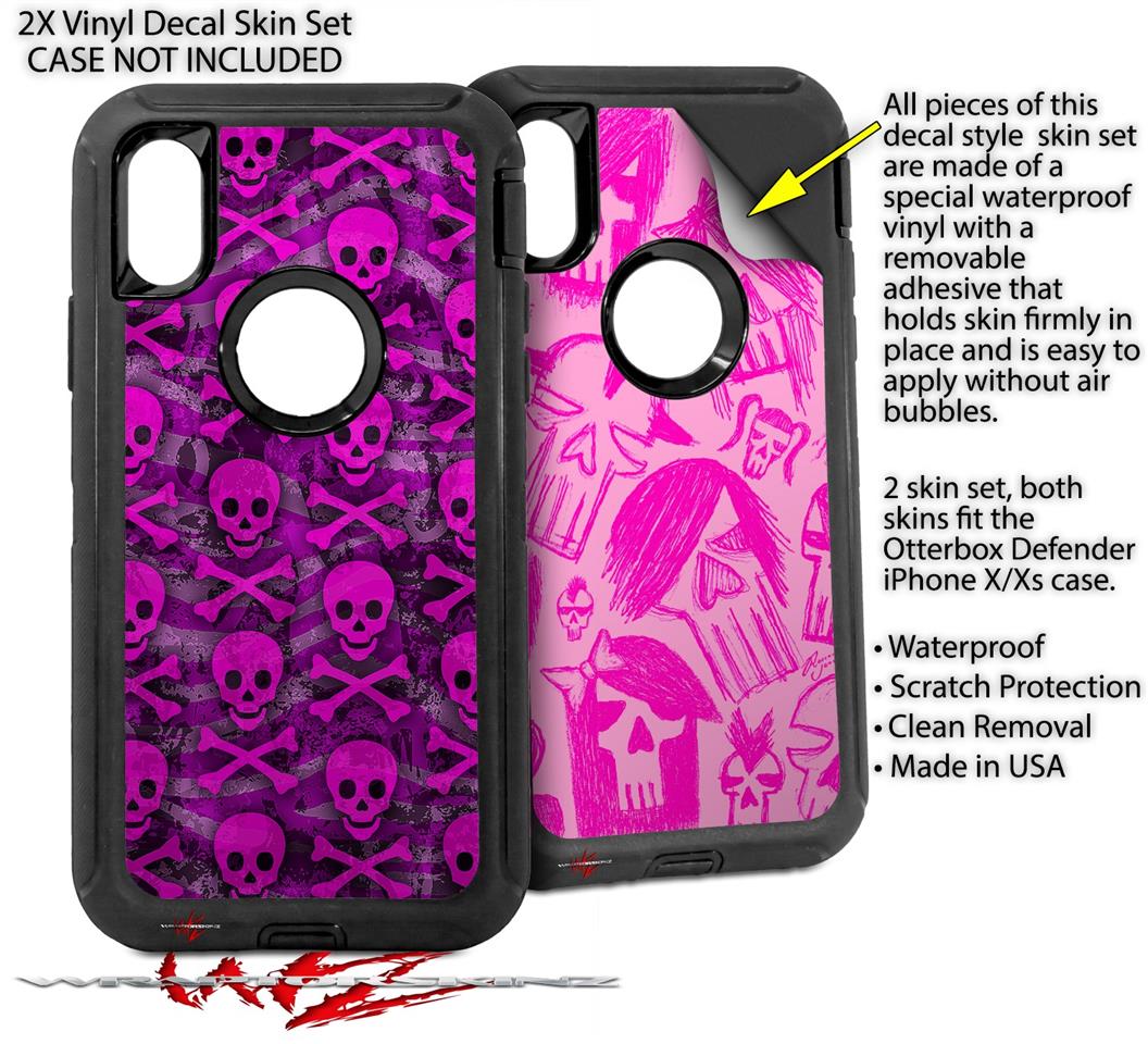 2x Decal style Skin Wrap Set compatible with Otterbox Defender iPhone X and Xs Case - Pink Skull Bones (CASE NOT INCLUDED)