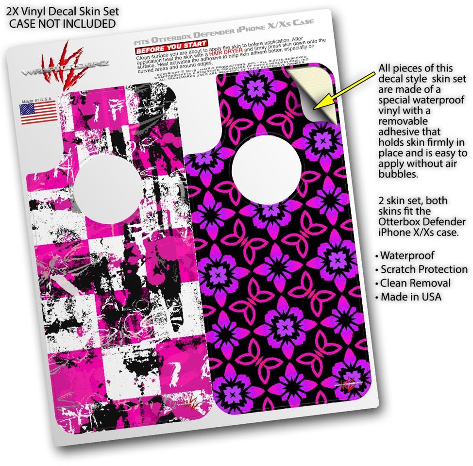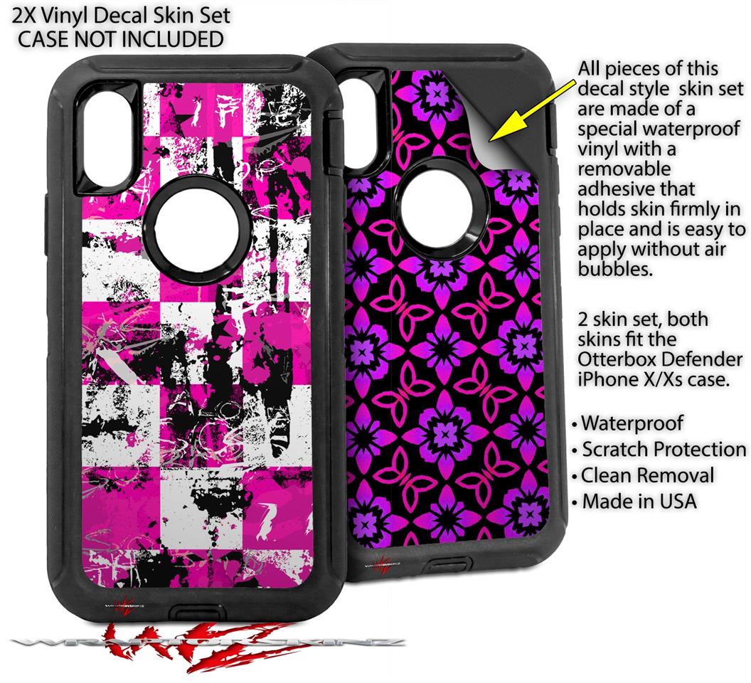 2x Decal style Skin Wrap Set compatible with Otterbox Defender iPhone X and Xs Case - Pink Graffiti (CASE NOT INCLUDED)