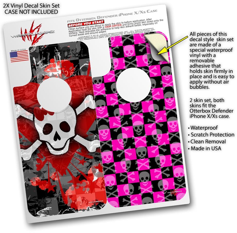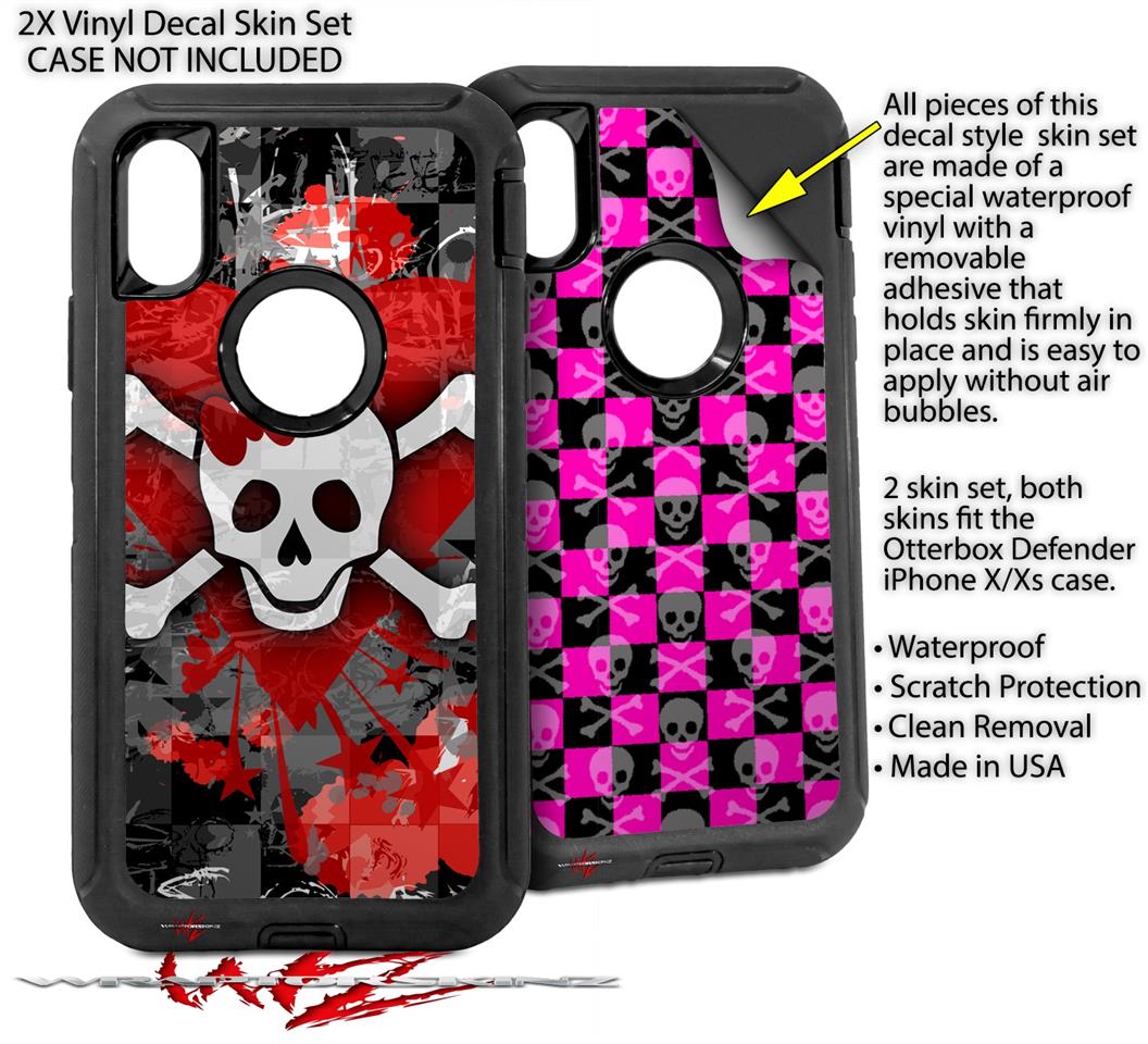 2x Decal style Skin Wrap Set compatible with Otterbox Defender iPhone X and Xs Case - Emo Skull Bones (CASE NOT INCLUDED)