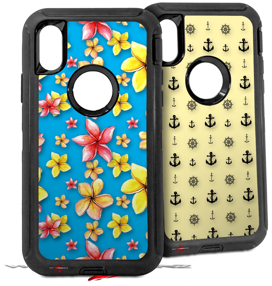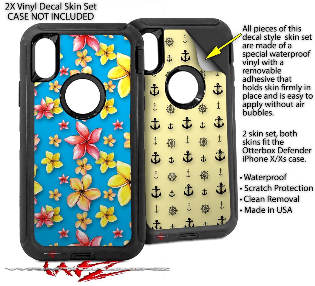 2x Decal style Skin Wrap Set compatible with Otterbox Defender iPhone X and Xs Case - Beach Flowers Blue Medium (CASE NOT INCLUDED)