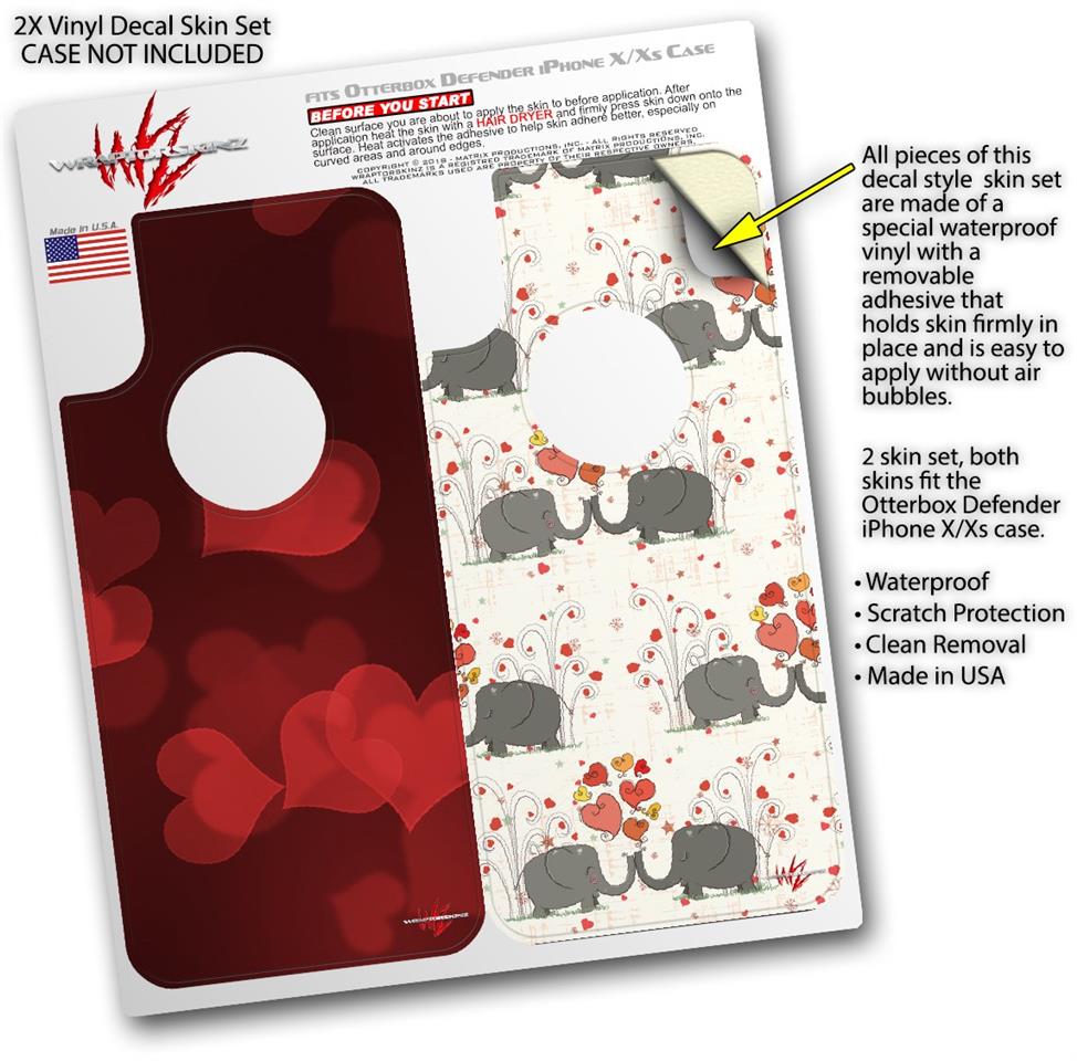 2x Decal style Skin Wrap Set compatible with Otterbox Defender iPhone X and Xs Case - Bokeh Hearts Red (CASE NOT INCLUDED)