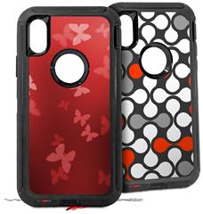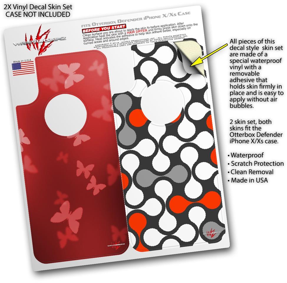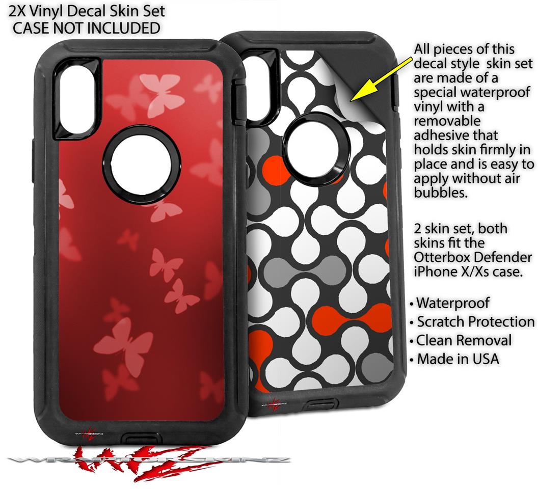 2x Decal style Skin Wrap Set compatible with Otterbox Defender iPhone X and Xs Case - Bokeh Butterflies Red (CASE NOT INCLUDED)