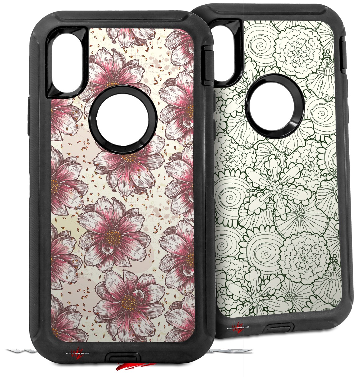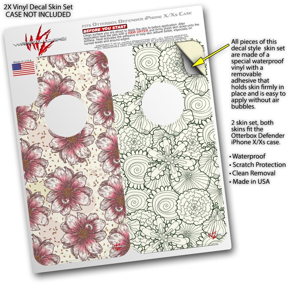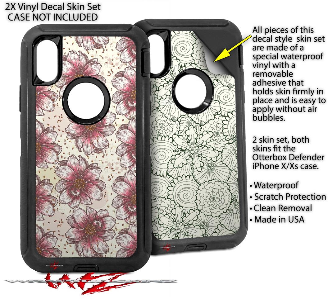 2x Decal style Skin Wrap Set compatible with Otterbox Defender iPhone X and Xs Case - Flowers Pattern 23 (CASE NOT INCLUDED)