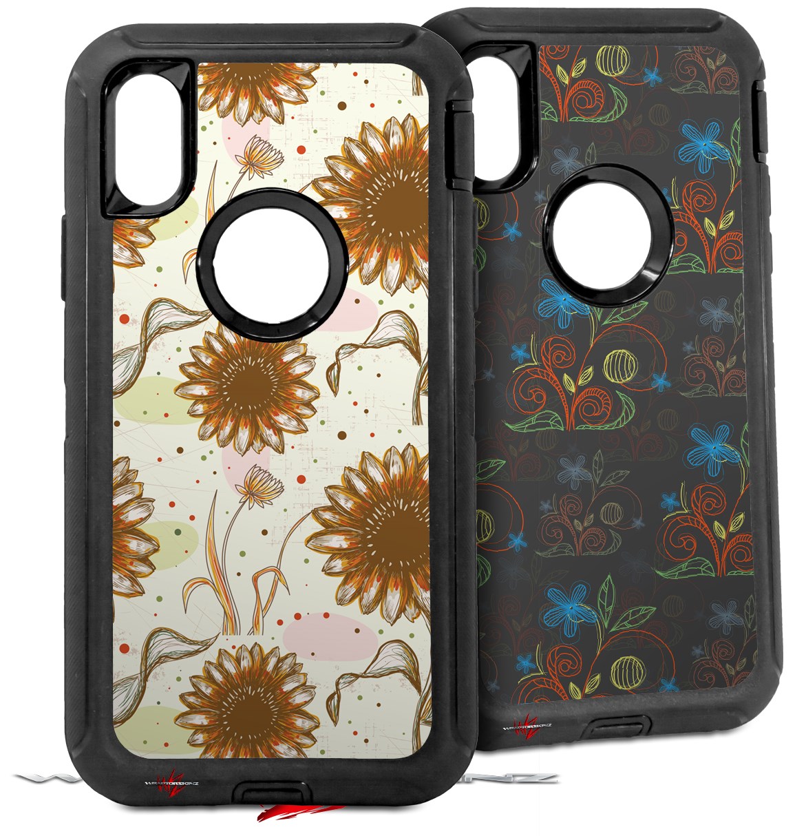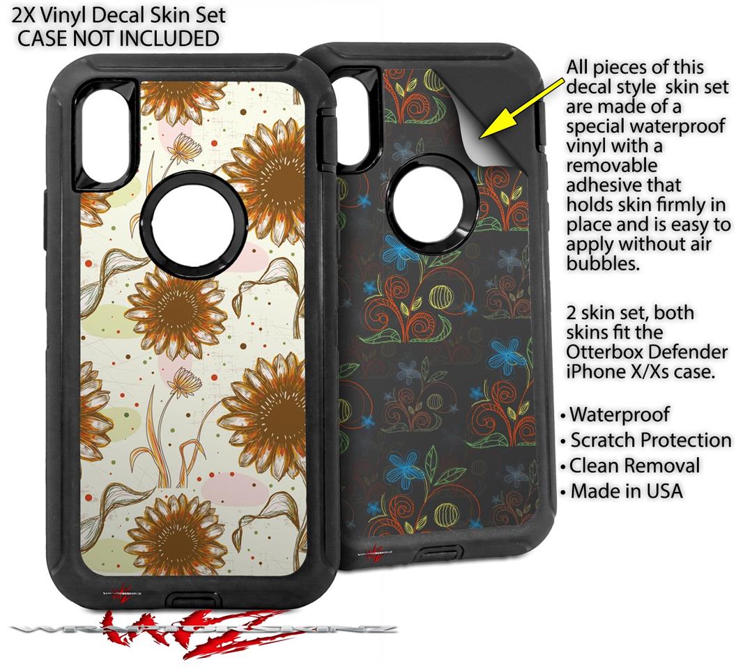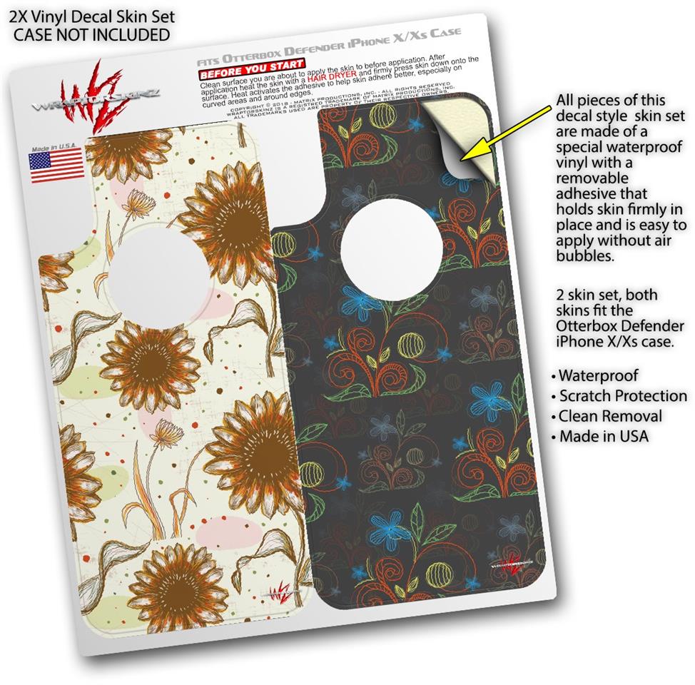 2x Decal style Skin Wrap Set compatible with Otterbox Defender iPhone X and Xs Case - Flowers Pattern 19 (CASE NOT INCLUDED)