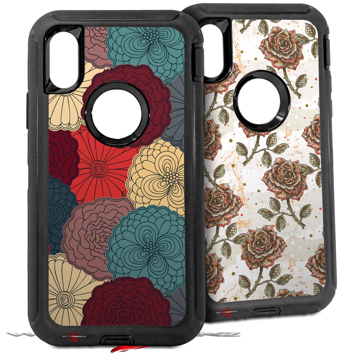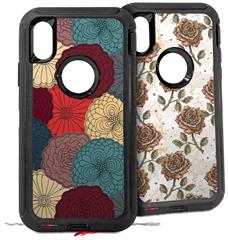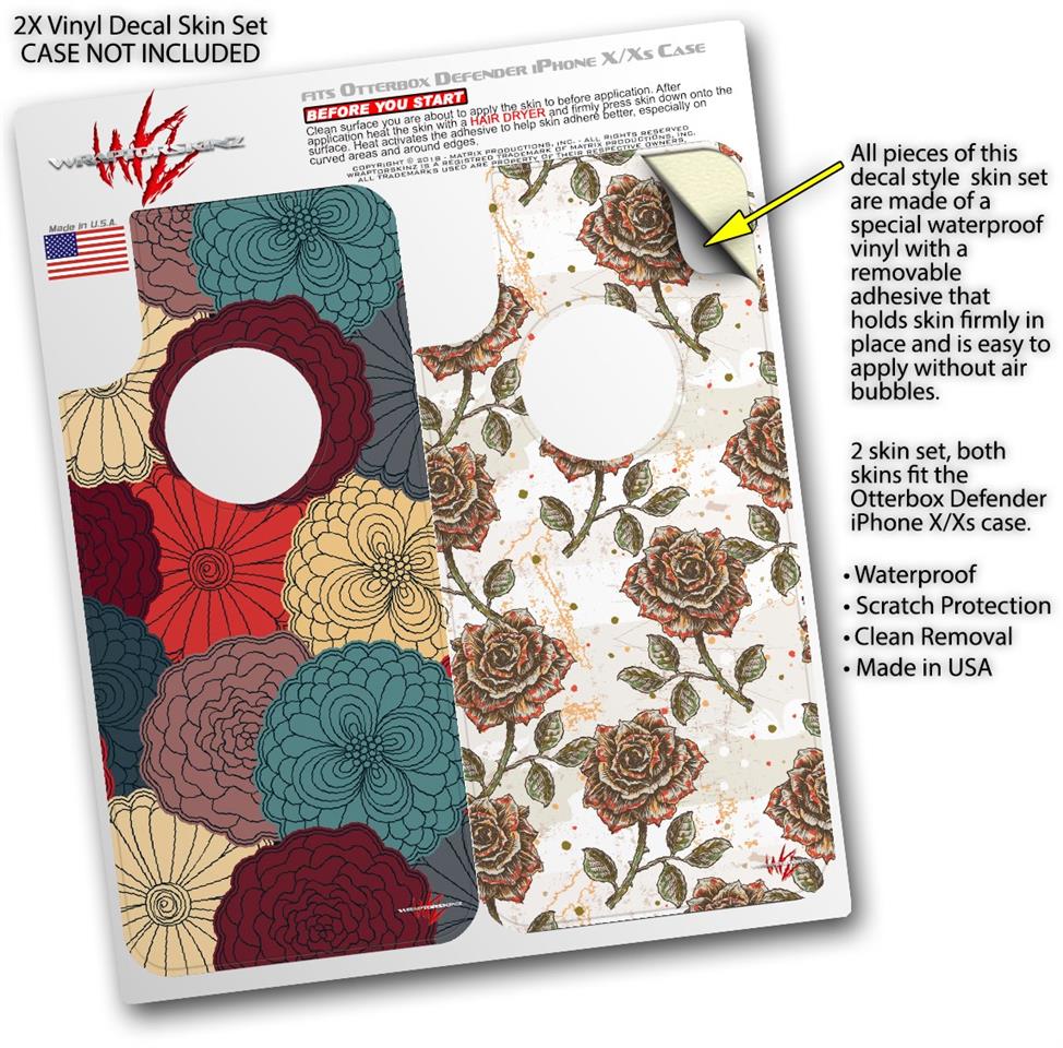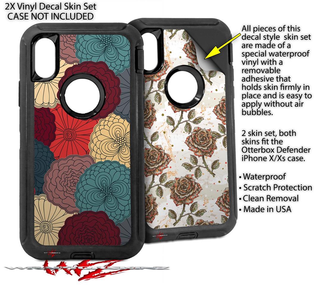 2x Decal style Skin Wrap Set compatible with Otterbox Defender iPhone X and Xs Case - Flowers Pattern 04 (CASE NOT INCLUDED)