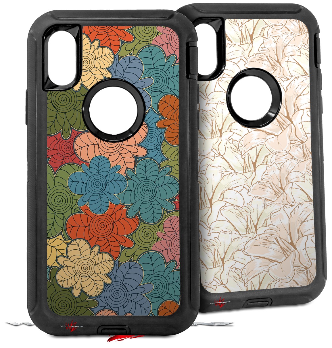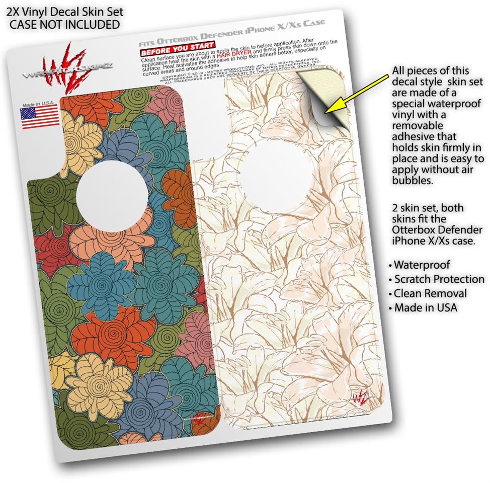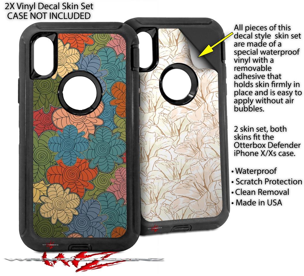 2x Decal style Skin Wrap Set compatible with Otterbox Defender iPhone X and Xs Case - Flowers Pattern 01 (CASE NOT INCLUDED)