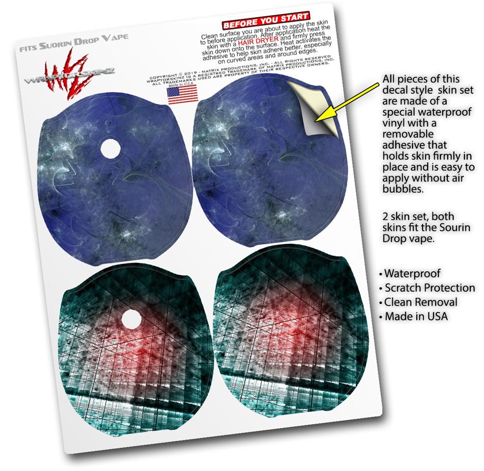 WraptorSkinz® skin wraps compatible with Suorin Drop Vape are printed using superb photo quality designs and vibrant colors printed with special fade resistant inks that last even in direct sun for years. WraptorSkinz are a composite of two layers of commercial grade materials. The bottom layer is a soft, flexible vinyl with a special removable adhesive that is easily positioned, applied without air bubbles. Next, we print the bottom layer with UV protected, fade resistant inks that deliver superb photo quality designs in vibrant colors. Finally, we bond a professional grade laminate over the entire skin adding a glossy protective finish. This product is not affiliated with or endorsed by Suorin.