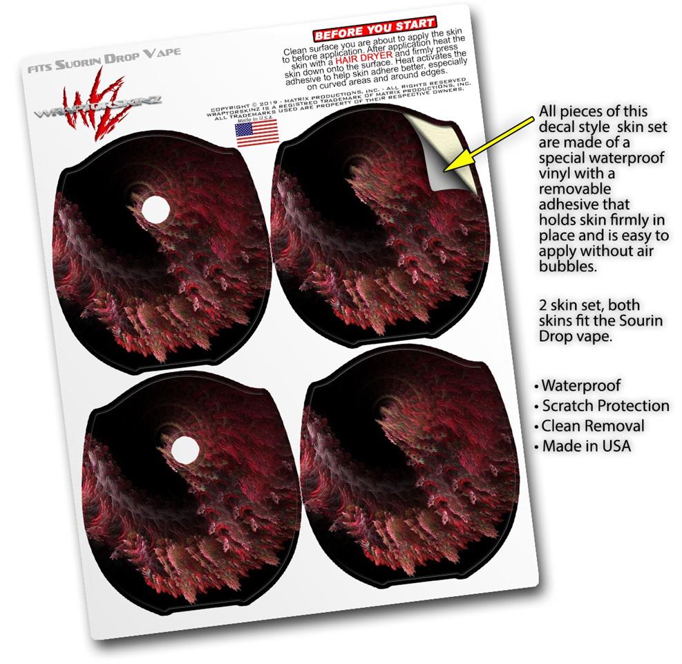 WraptorSkinz® skin wraps compatible with Suorin Drop Vape are printed using superb photo quality designs and vibrant colors printed with special fade resistant inks that last even in direct sun for years. WraptorSkinz are a composite of two layers of commercial grade materials. The bottom layer is a soft, flexible vinyl with a special removable adhesive that is easily positioned, applied without air bubbles. Next, we print the bottom layer with UV protected, fade resistant inks that deliver superb photo quality designs in vibrant colors. Finally, we bond a professional grade laminate over the entire skin adding a glossy protective finish. This product is not affiliated with or endorsed by Suorin.