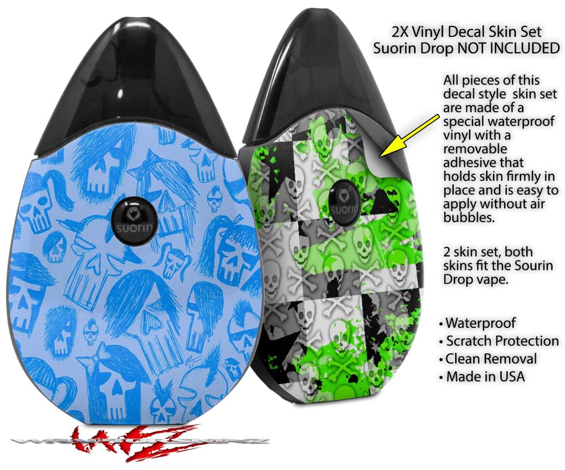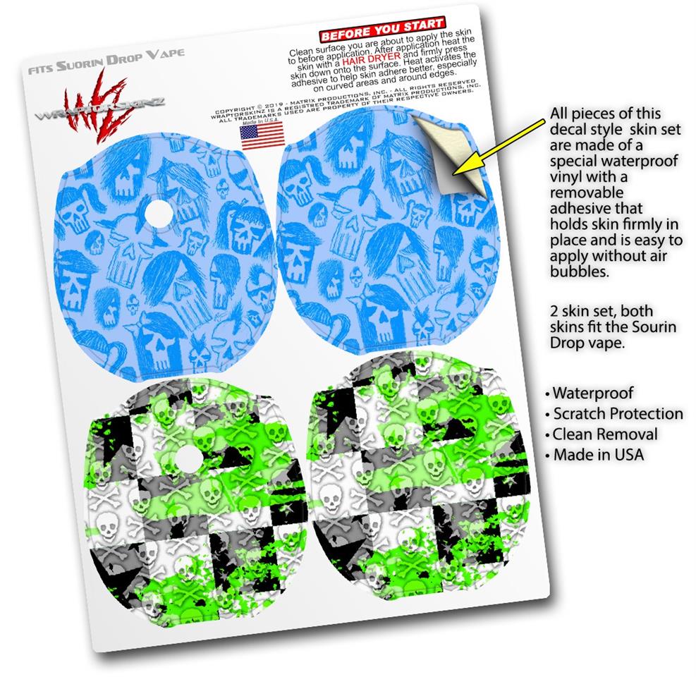 Skin Decal Wrap 2 Pack compatible with Suorin Drop Skull Sketches Blue VAPE NOT INCLUDED