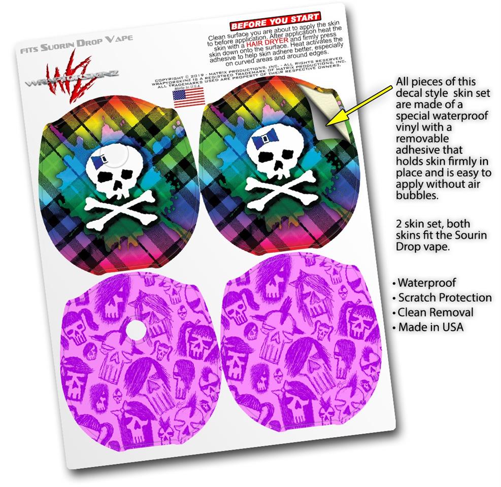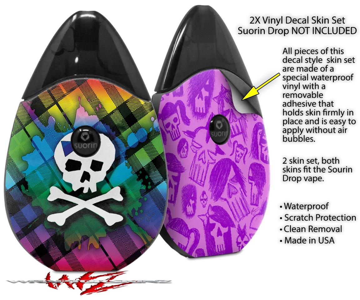 Skin Decal Wrap 2 Pack compatible with Suorin Drop Rainbow Plaid Skull VAPE NOT INCLUDED
