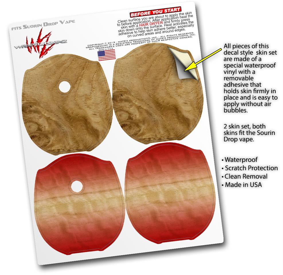 Skin Decal Wrap 2 Pack compatible with Suorin Drop Exotic Wood White Oak Burl VAPE NOT INCLUDED