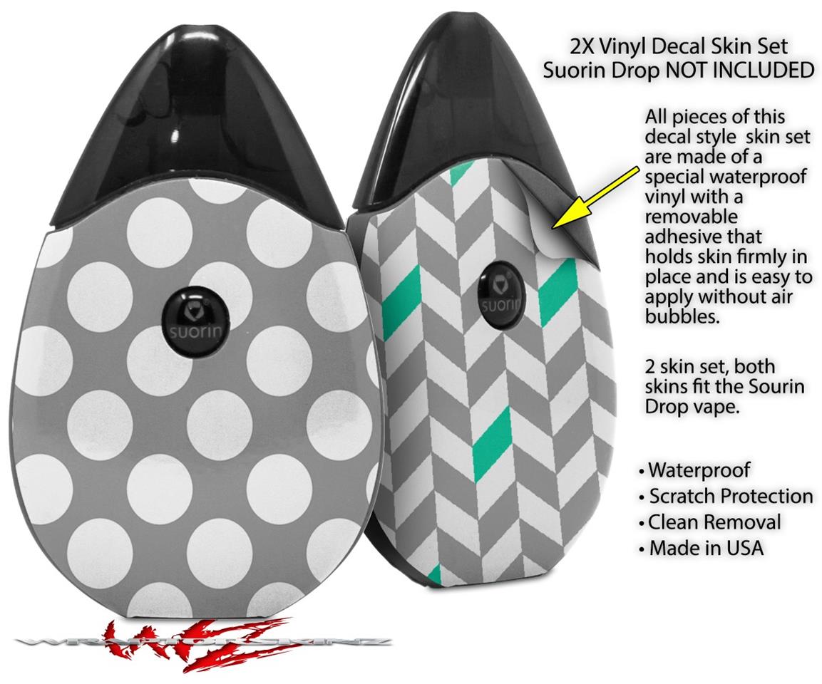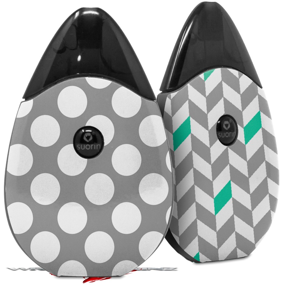 Skin Decal Wrap 2 Pack compatible with Suorin Drop Kearas Polka Dots Whtie On Gray VAPE NOT INCLUDED