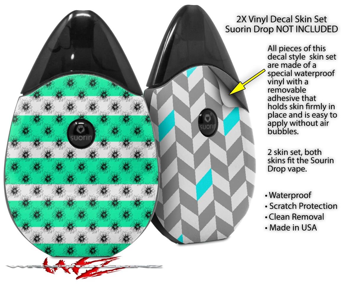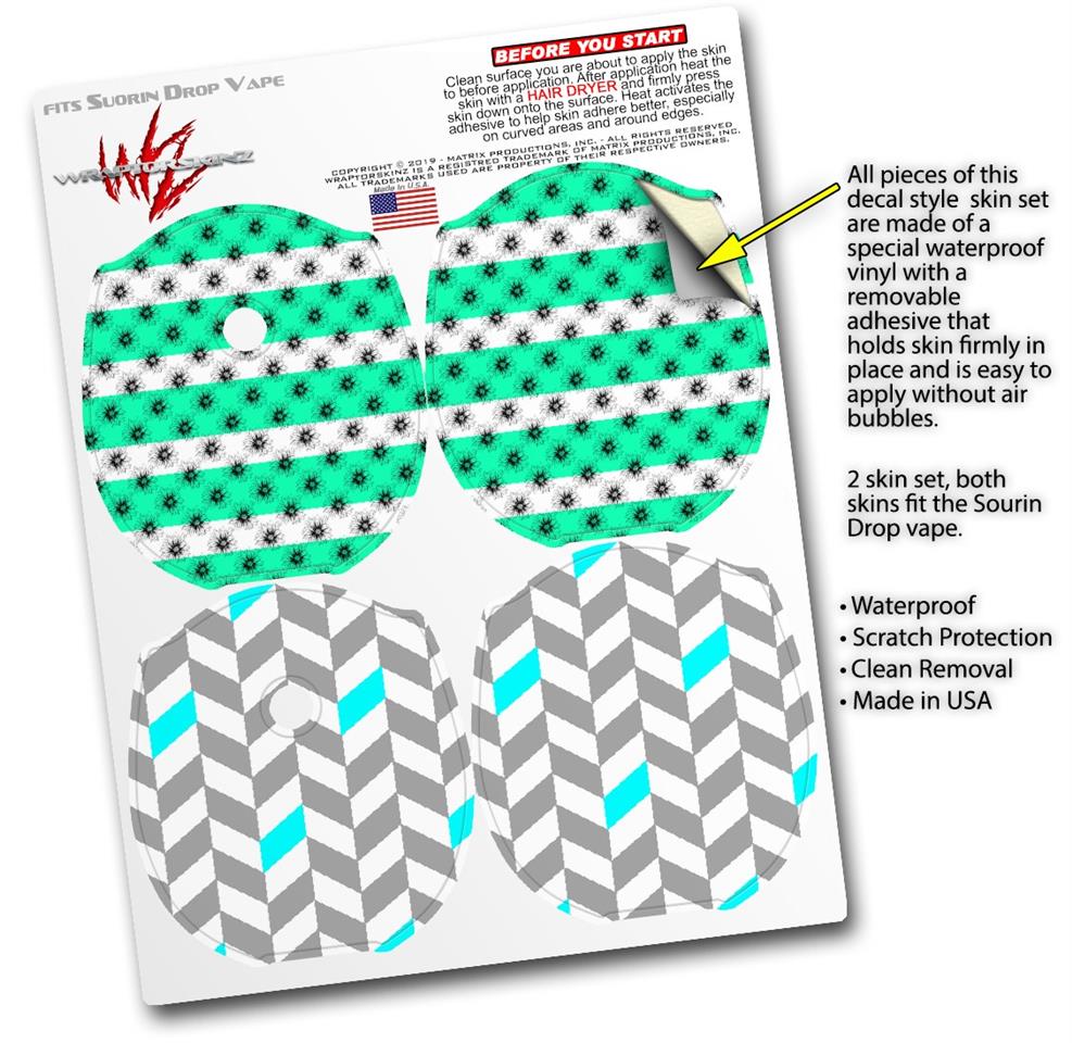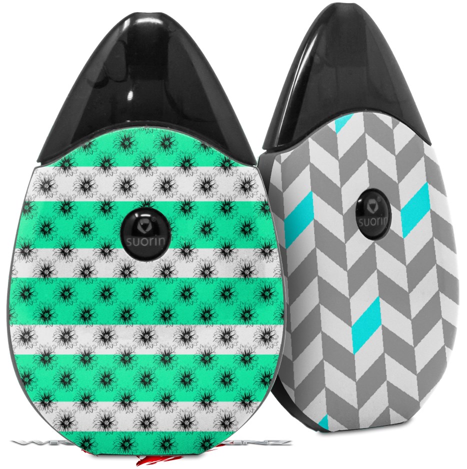 Skin Decal Wrap 2 Pack compatible with Suorin Drop Kearas Daisies Stripe SeaFoam VAPE NOT INCLUDED