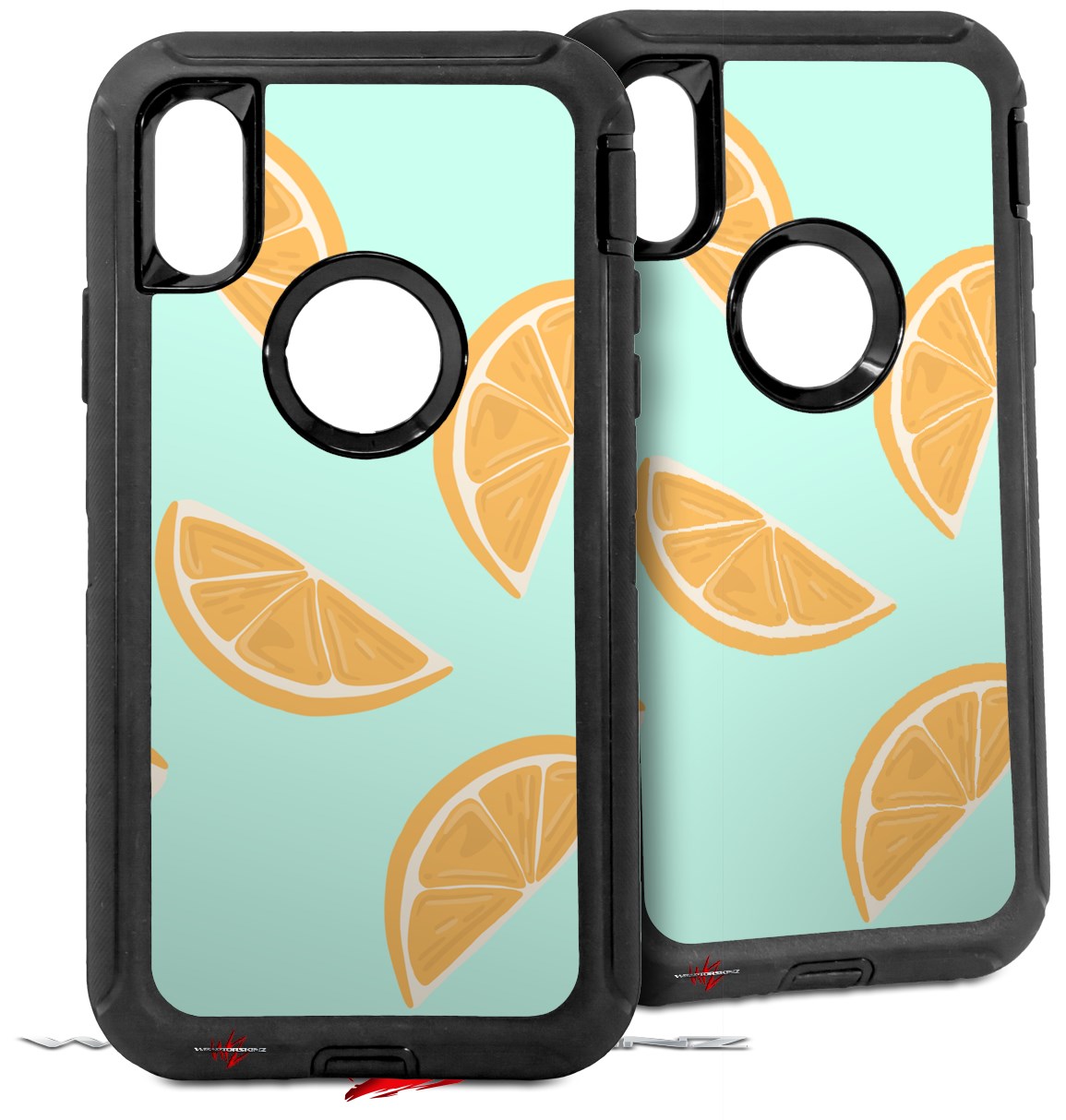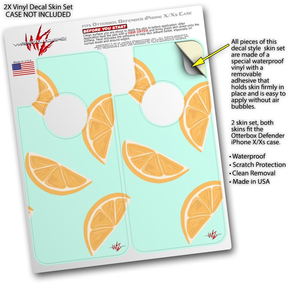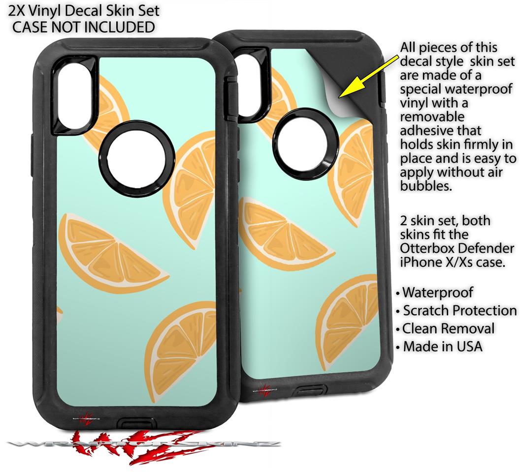 2x Decal style Skin Wrap Set compatible with Otterbox Defender iPhone X and Xs Case - Oranges Blue (CASE NOT INCLUDED)