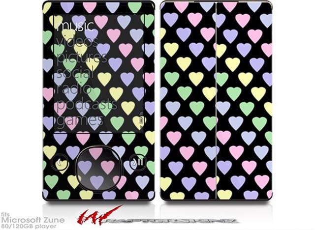 Pastel Hearts on Black - Decal Style skin fits Zune 80/120GB (ZUNE SOLD SEPARATELY)