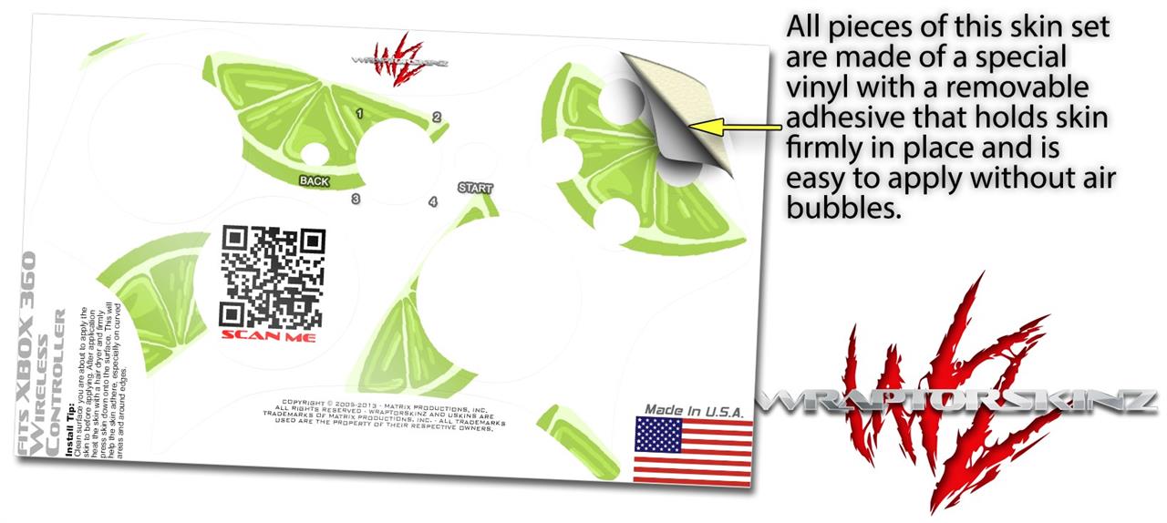 Decal Skin compatible with XBOX 360 Wireless Controller Limes (CONTROLLER NOT INCLUDED)