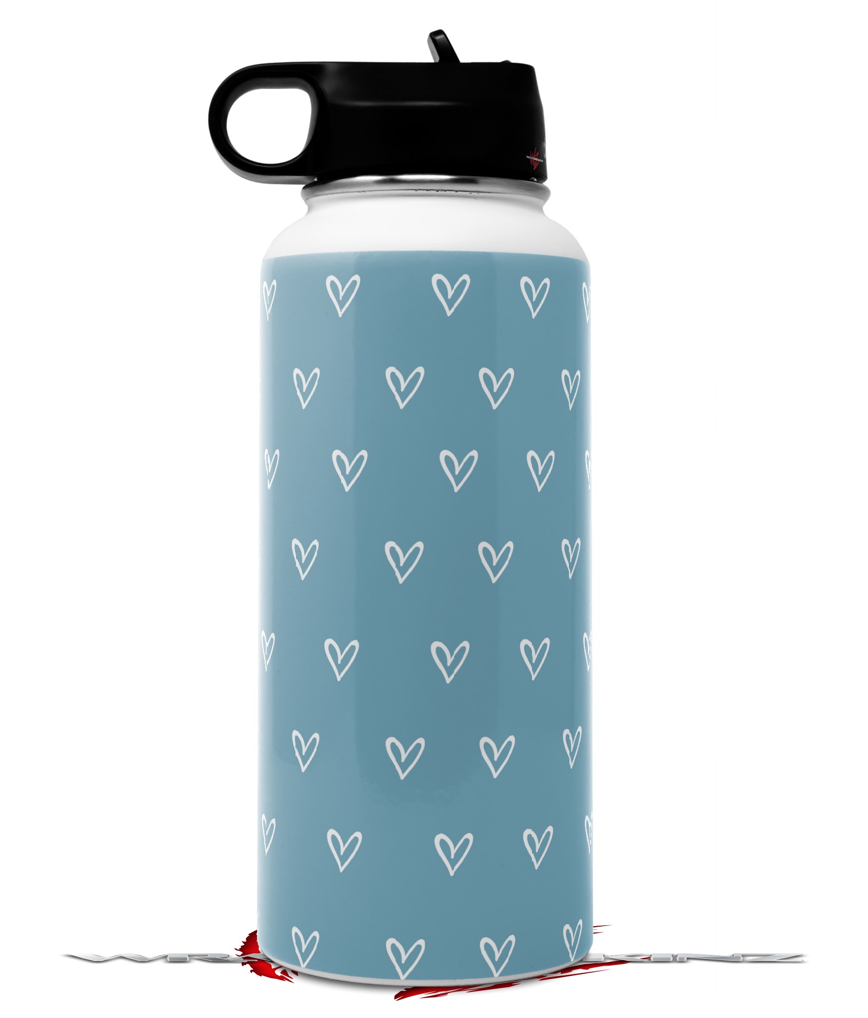Skin Wrap Decal compatible with Hydro Flask Wide Mouth Bottle 32oz Hearts Blue On White (BOTTLE NOT INCLUDED)