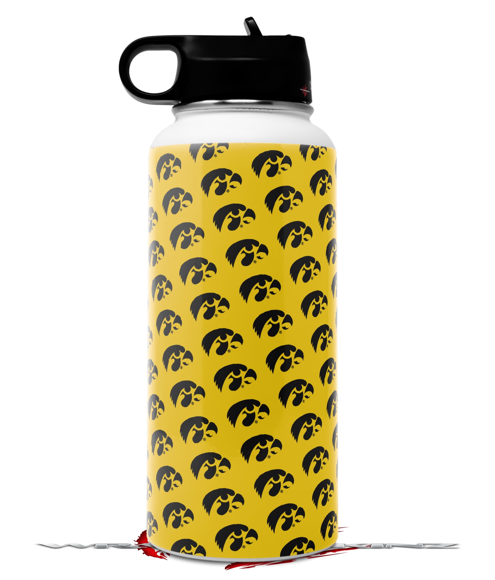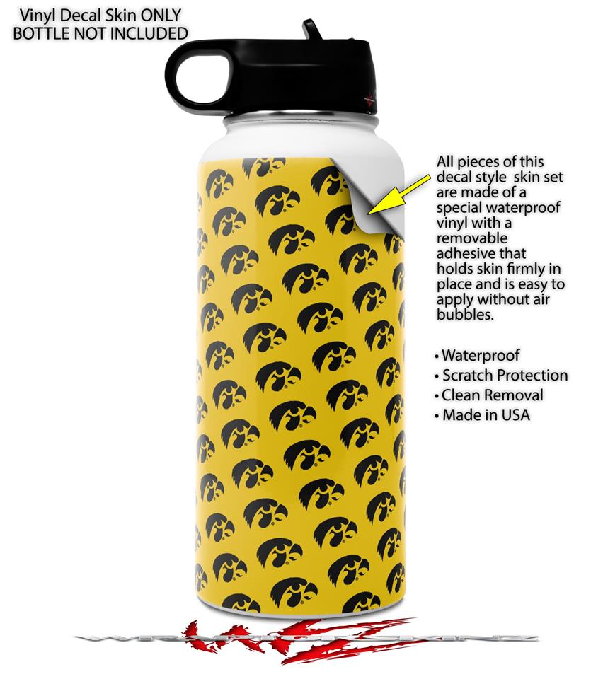 Skin Wrap Decal compatible with Hydro Flask Wide Mouth Bottle 32oz Iowa Hawkeyes Tigerhawk Tiled 06 Black on Gold (BOTTLE NOT INCLUDED)