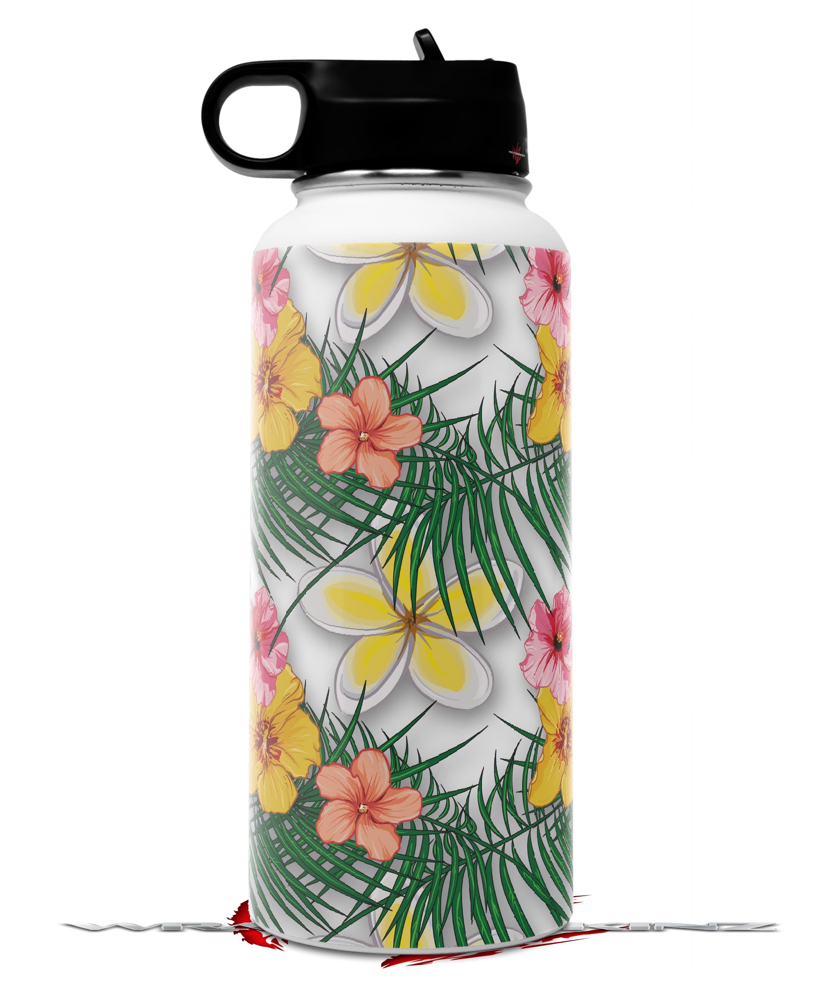 Skin Wrap Decal compatible with Hydro Flask Wide Mouth Bottle 32oz Beach Flowers 02 White (BOTTLE NOT INCLUDED)
