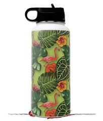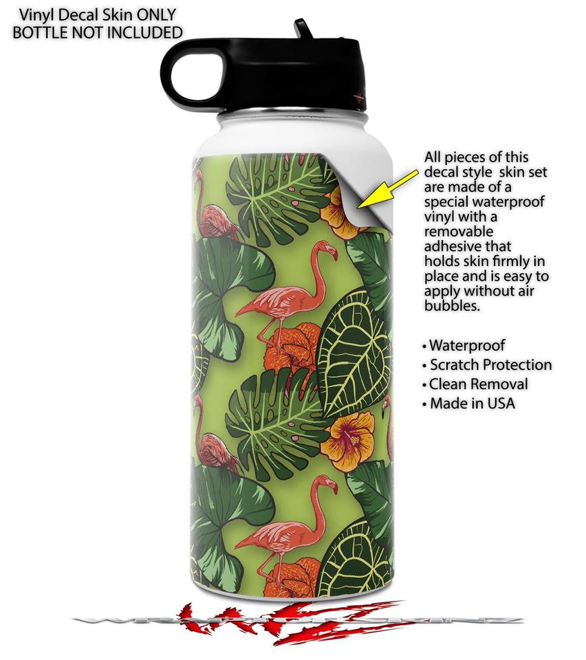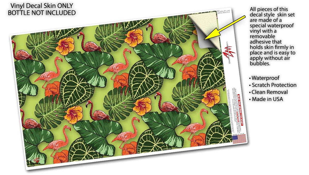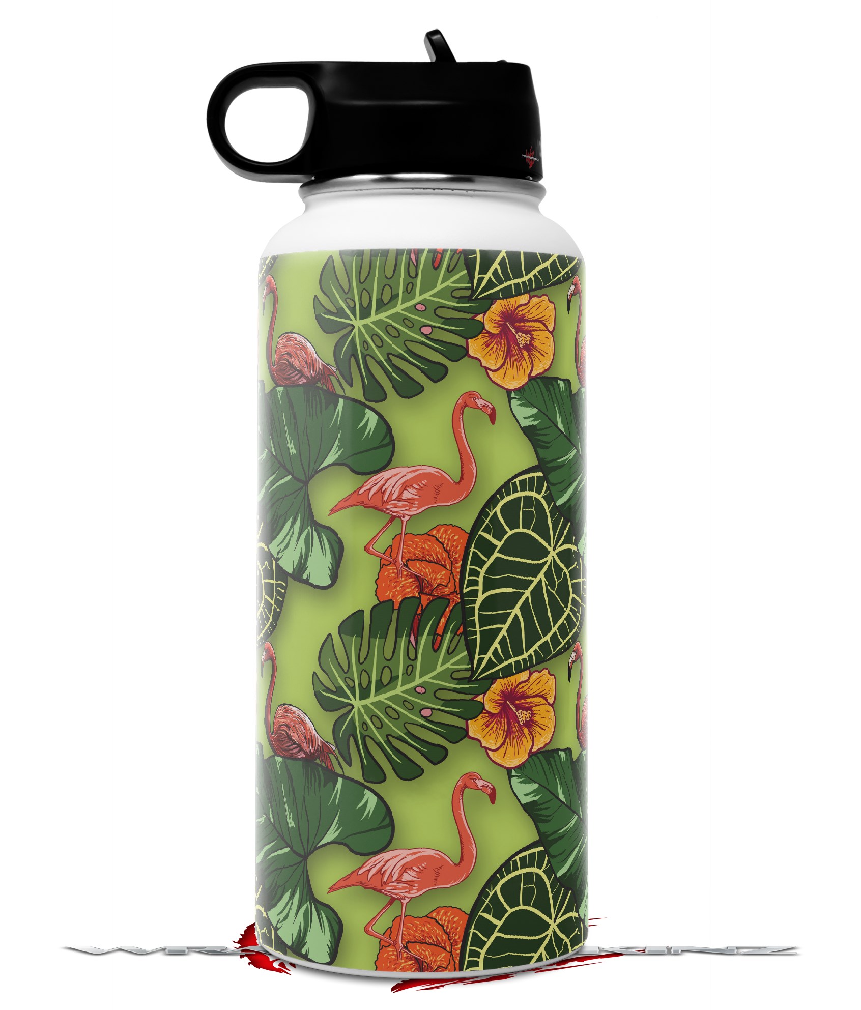 Skin Wrap Decal compatible with Hydro Flask Wide Mouth Bottle 32oz Famingos and Flowers Sage Green (BOTTLE NOT INCLUDED)