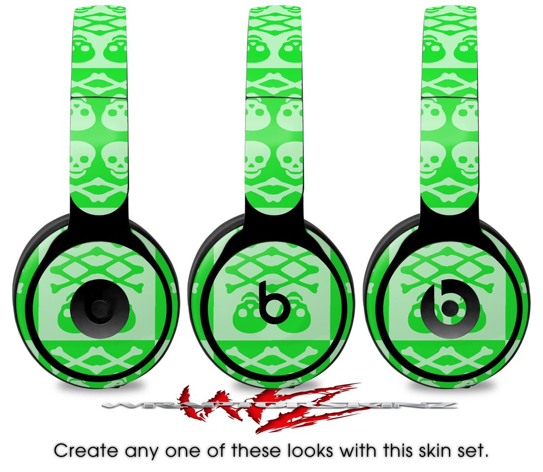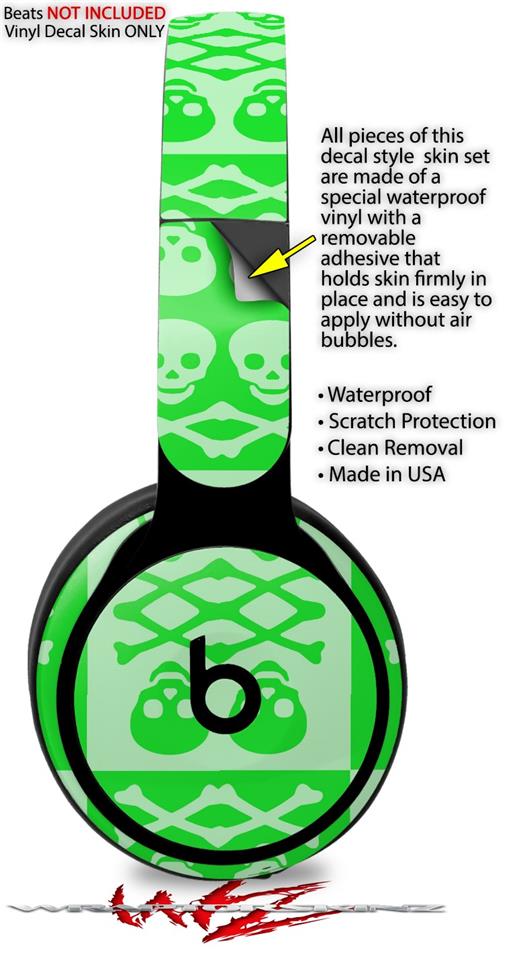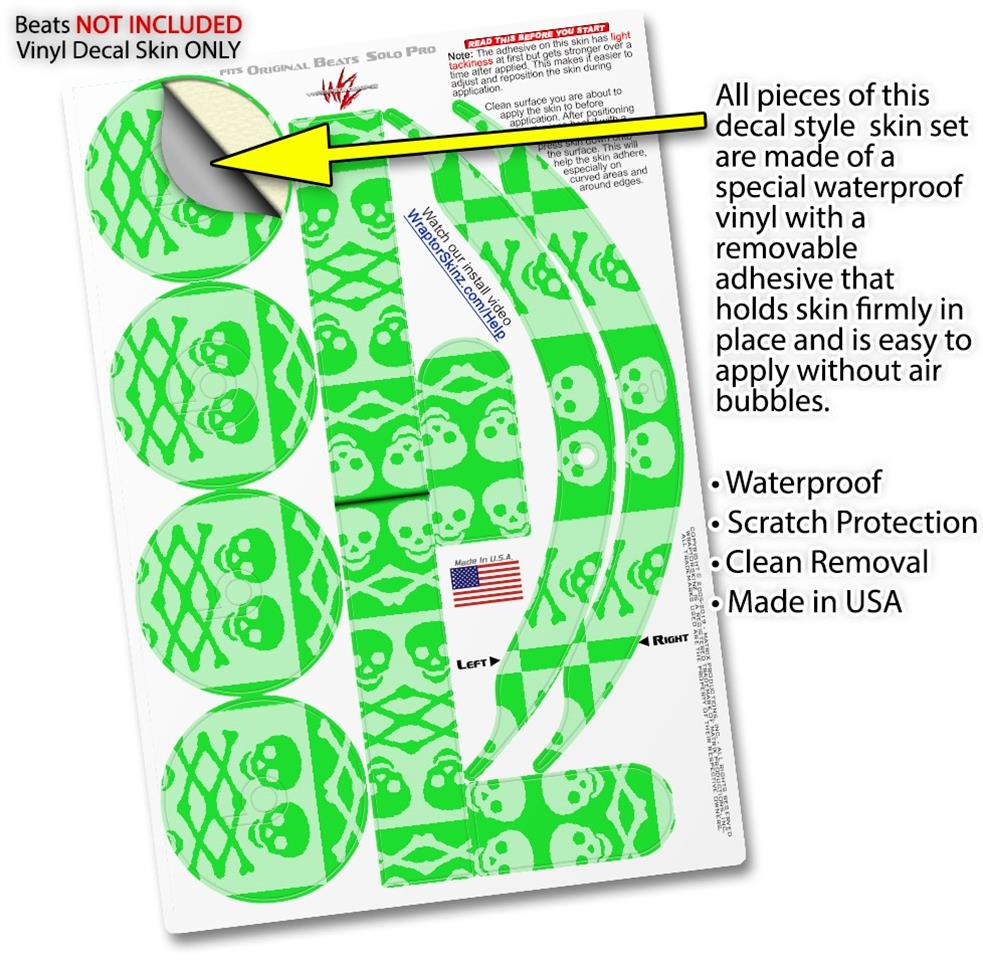WraptorSkinz Skin Skin Decal Wrap works with Beats Solo Pro (Original) Headphones Skull And Crossbones Pattern Green Skin Only BEATS NOT INCLUDED