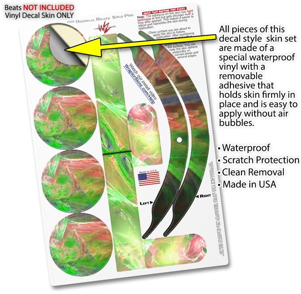 This product is in no way affiliated with or endorsed by Apple or Beats brand products. WraptorSkinz® skin wraps work with the Original Beats Solo Pro version 1 headphones. Printed using superb photo quality designs and vibrant colors printed with special fade resistant inks that last even in direct sun for years. WraptorSkinz are a composite of two layers of commercial grade materials. The bottom layer is a soft, flexible vinyl with a special removable adhesive that is easily positioned, applied without air bubbles. Next, we print the bottom layer with UV protected, fade resistant inks that deliver superb photo quality designs in vibrant colors. Finally, we bond a professional grade laminate over the entire skin adding a glossy protective finish.