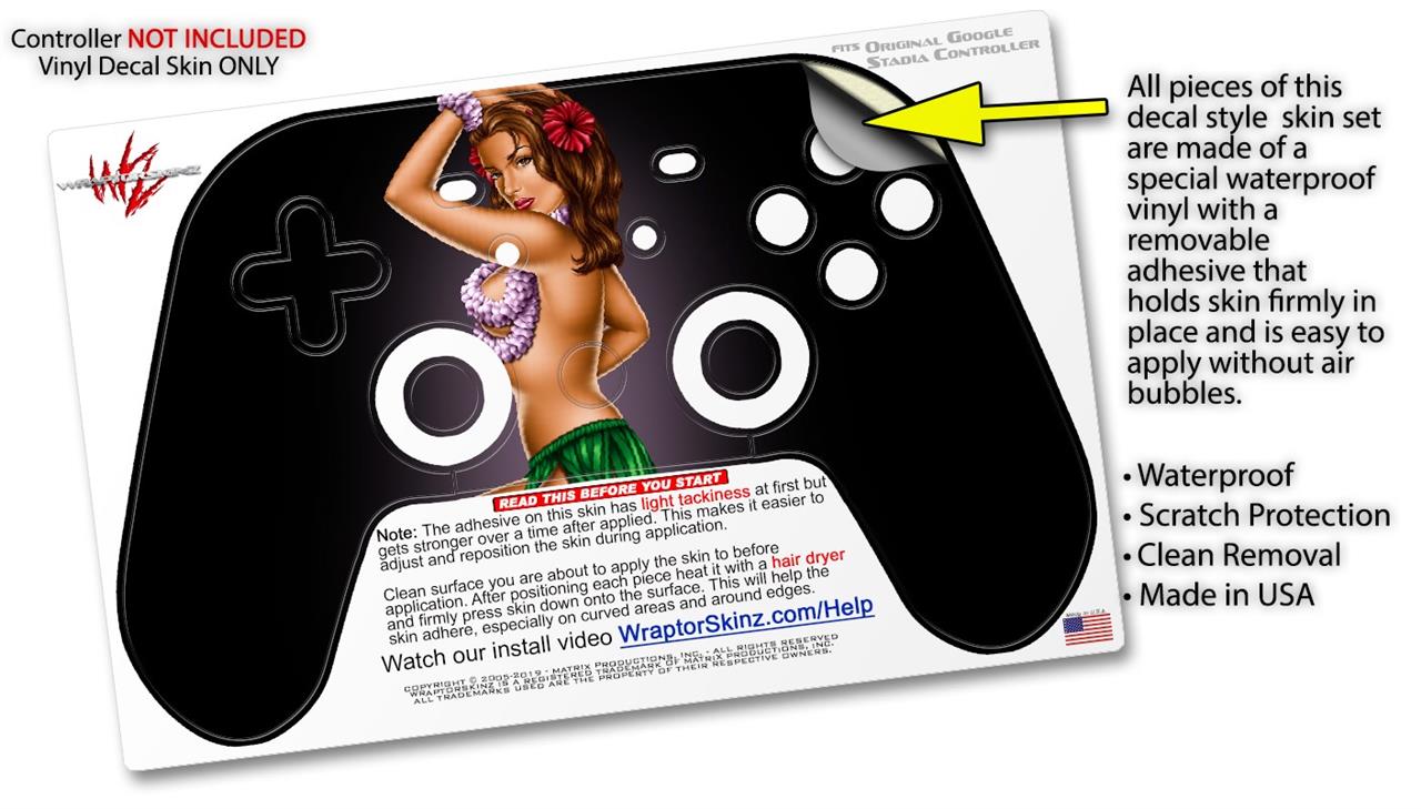 Skin Decal Wrap works with Original Google Stadia Controller Hula Girl Pin Up Skin Only CONTROLLER NOT INCLUDED