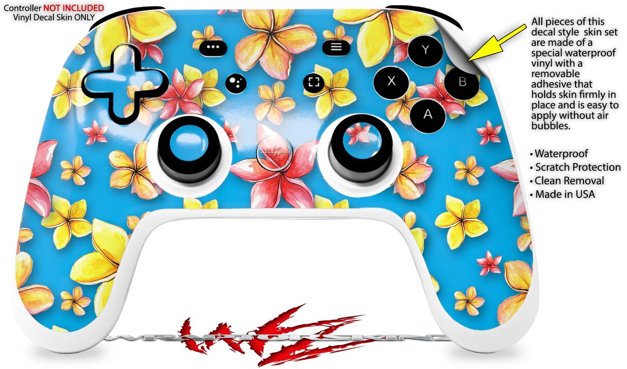 Skin Decal Wrap works with Original Google Stadia Controller Beach Flowers Blue Medium Skin Only CONTROLLER NOT INCLUDED